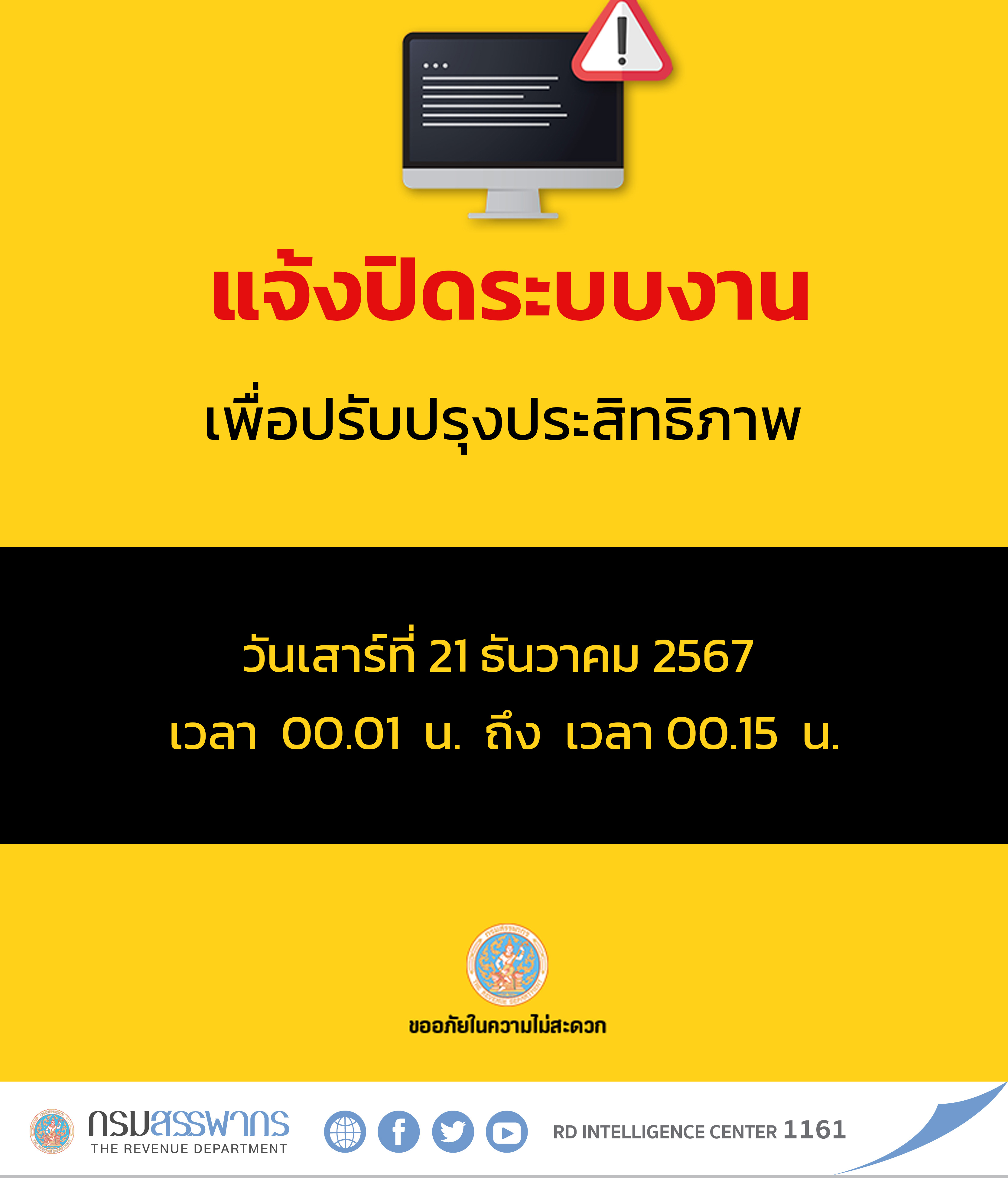 แจ้งปิดระบบ เพื่อเพิ่มประสิทธิภาพการให้บริการ