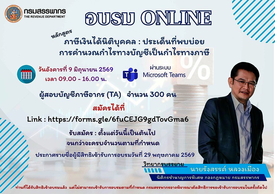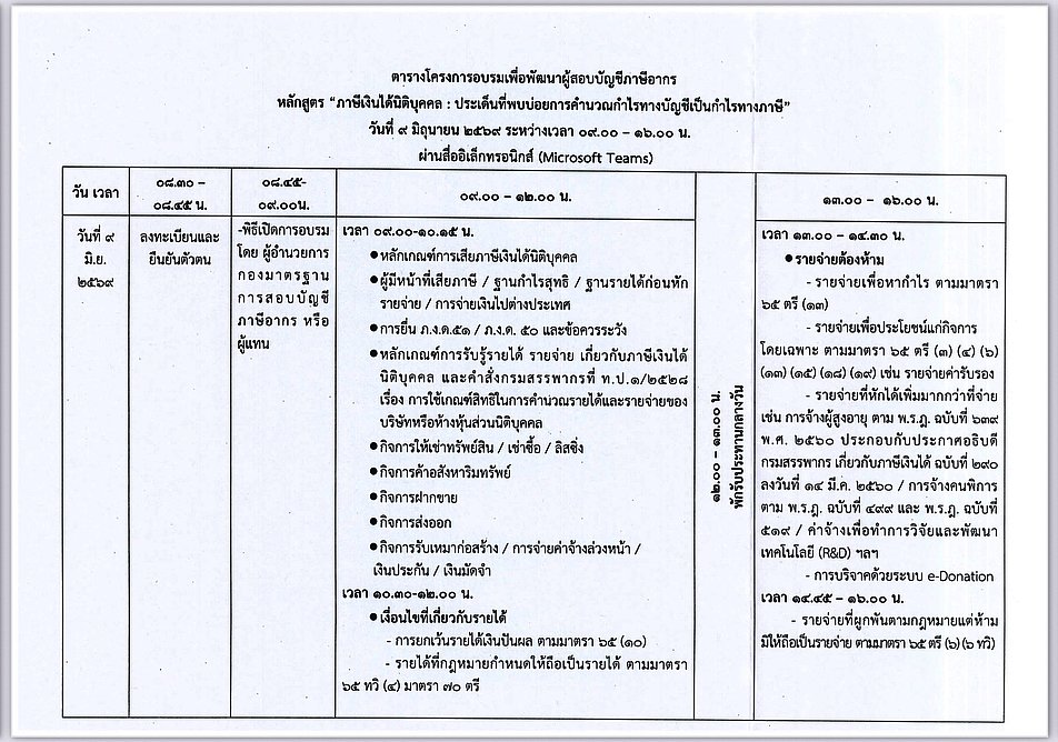 อบรมผ่าน MS Teams ในวันอังคารที่ 9 มิถุนายน 2569 เวลา 09.00 น. ถึง เวลา 16.00 น.