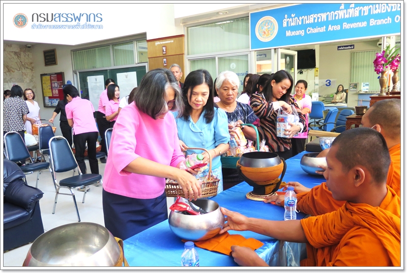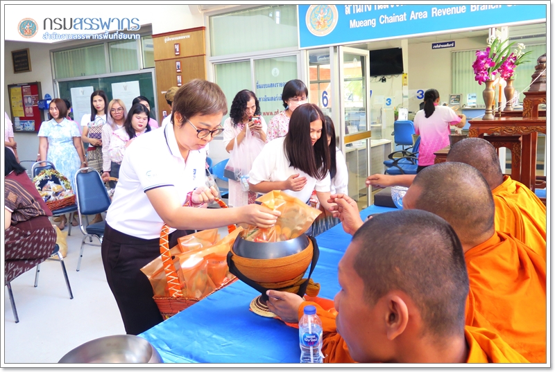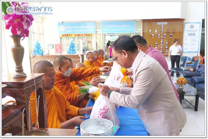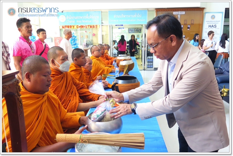 นายกมล คำตุ้ม สรรพากรพื้นที่ชัยนาท พร้อมด้วย ข้าราชการ พนักงานราชการ และลูกจ้าง ในสังกัดสำนักงานสรรพากรพื้นที่ชัยนาท และสรรพากรพื้นที่สาขา ร่วมกันทำบุญตักบาตร เนื่องในวาระดิถีขึ้นปีใหม่ ณ สำนักงานสรรพากรพื้นที่ชัยนาท