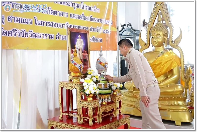 สำนักงานสรรพากรพื้นที่ชัยนาท นำโดยนางป่านฤทัย ขวัญหอม ผู้ช่วยสรรพากรพื้นที่ชัยนาท นายพงษ์นรินทร์ โชติเฉลิมพงษ์ หัวหน้าส่วนกฎหมายและเร่งรัดภาษีอากรค้าง และตัวแทนนางสาวอุดมลักษณ์ บุญเสริม หัวหน้าส่วนกรรมวิธีและคืนภาษี เข้าร่วมพิธีบำเพ็ญพระราชกุศล ถวายภัตตาหารเพล และเครื่องเขียนพระราชทาน แด่พระภิกษุ สามเณร ในการสอบบาลีสนามหลวง ครั้งที่ 1 ครั้งหลัง ปี พ.ศ.2568 ระหว่างวันที่ 22-24 กุมภาพันธ์ พ.ศ.2568 ณ อุโบสถ วัดศรีวิชัยวัฒนาราม อำเภอเมืองชัยนาท จังหวัดชัยนาท โดยมีนายวิษณุ วิทยวราวัฒน์ รองผู้ว่าราชการจังหวัดชัยนาท เป็นประธานในพิธี