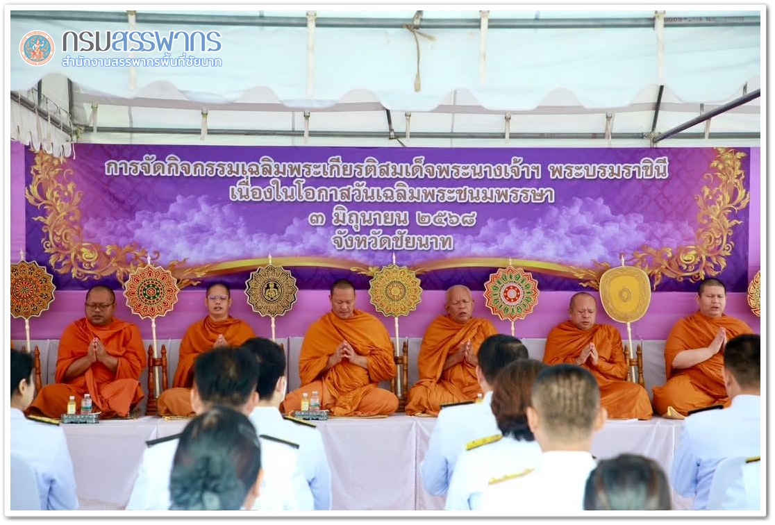สำนักงานสรรพากรพื้นที่ชัยนาท นำโดยนางอัจฉรา จตุรนต์รัศมี ผู้ช่วยสรรพากรพื้นที่ชัยนาท พร้อมคณะ และเหล่าพสกนิกรชาวจังหวัดชัยนาท พร้อมใจทำบุญตักบาตร เนื่องในโอกาสวันเฉลิมพระชนมพรรษาสมเด็จพระนางเจ้าสุทิดา พัชรสุธาพิมลลักษณ พระบรมราชินี 3 มิถุนายน 2568 ณ บริเวณเขื่อนเรียงหินหน้าศาลากลาง จังหวัดชัยนาท โดยมี นายนที มนตริวัต ผู้ว่าราชการจังหวัดชัยนาท เป็นประธาน ร่วมกันประกอบพิธีสงฆ์ เจริญพระพุทธมนต์ ถวายพระพรชัยมงคล และตักบาตรอาหารแห้งแด่พระภิกษุสงฆ์จำนวน 48 รูป ถวายเป็นพระราชกุศล แด่สมเด็จพระนางเจ้าสุทิดา พัชรสุธาพิมลลักษณ พระบรมราชินี เนื่องในวโรกาสวันเฉลิมพระชนมพรรษา 3 มิถุนายน 2568 โดยมีพระราชวชิรกิจจาทร เจ้าคณะจังหวัดชัยนาท เจ้าอาวาสวัดพระบรมธาตุวรวิหารเป็นประธานฝ่ายสงฆ์