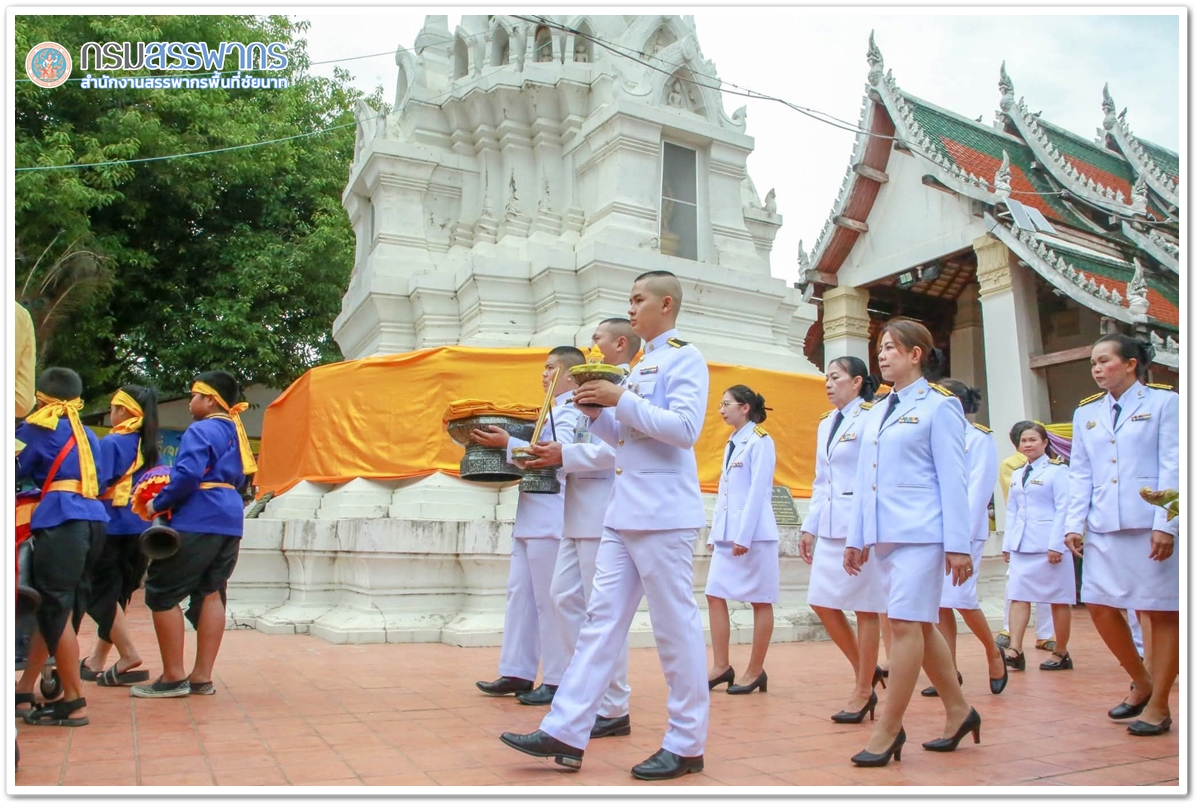 สำนักงานสรรพากรพื้นที่สาขาเมืองชัยนาท เข้าร่วมพิธีสรงน้ำและห่มผ้าพระบรมธาตุเจดีย์ศรีไชยนาท พระราชทานจากสมเด็จพระกนิษฐาธิราชเจ้า กรมสมเด็จพระเทพรัตนราชสุดาฯ สยามบรมราชกุมารี เนื่องในงานประเพณีห่มผ้าพระบรมธาตุเจดีย์ศรีไชยนาทประจำปี 2568 ณ พระบรมธาตุเจดีย์ วัดพระบรมธาตุ วรวิหาร (พระอารามหลวง) อำเภอเมืองชัยนาท จังหวัดชัยนาท โดยมีนายวิษณุ วิทยวราวัฒน์ รองผู้ว่าราชการจังหวัดชัยนาท เป็นประธานประกอบพิธีนำน้ำสรง และผ้าห่มพระบรมธาตุพระราชทาน จากสมเด็จพระกนิษฐาธิราชเจ้า กรมสมเด็จพระเทพรัตนราชสุดาฯ สยามบรมราชกุมารี ที่ทรงพระกรุณาโปรดเกล้าฯ พระราชทานน้ำสรง เพื่อนำไปสรงน้ำพระสารีริกธาตุ ในงานประเพณีห่มผ้าพระบรมธาตุเจดีย์ศรีไชยนาท ประจำปี 2568 เพื่อถวายเป็นพุทธบูชา อุทิศถวายเป็นพระราชกุศล แด่ พระบรมชนกาธิเบศร มหาภูมิพลอดุลยเดชมหาราช บรมนาถบพิตร และถวายเป็นพระราชกุศล แด่ สมเด็จพระนางเจ้าสิริกิติ์ พระบรมราชินีนาถ พระบรมราชชนนี พันปีหลวง โดยมีพระราชวชิรกิจจาทร เจ้าคณะจังหวัดชัยนาท เจ้าอาวาสวัดพระบรมธาตุ วรวิหาร ประธานฝ่ายสงฆ์