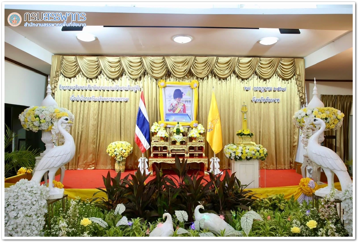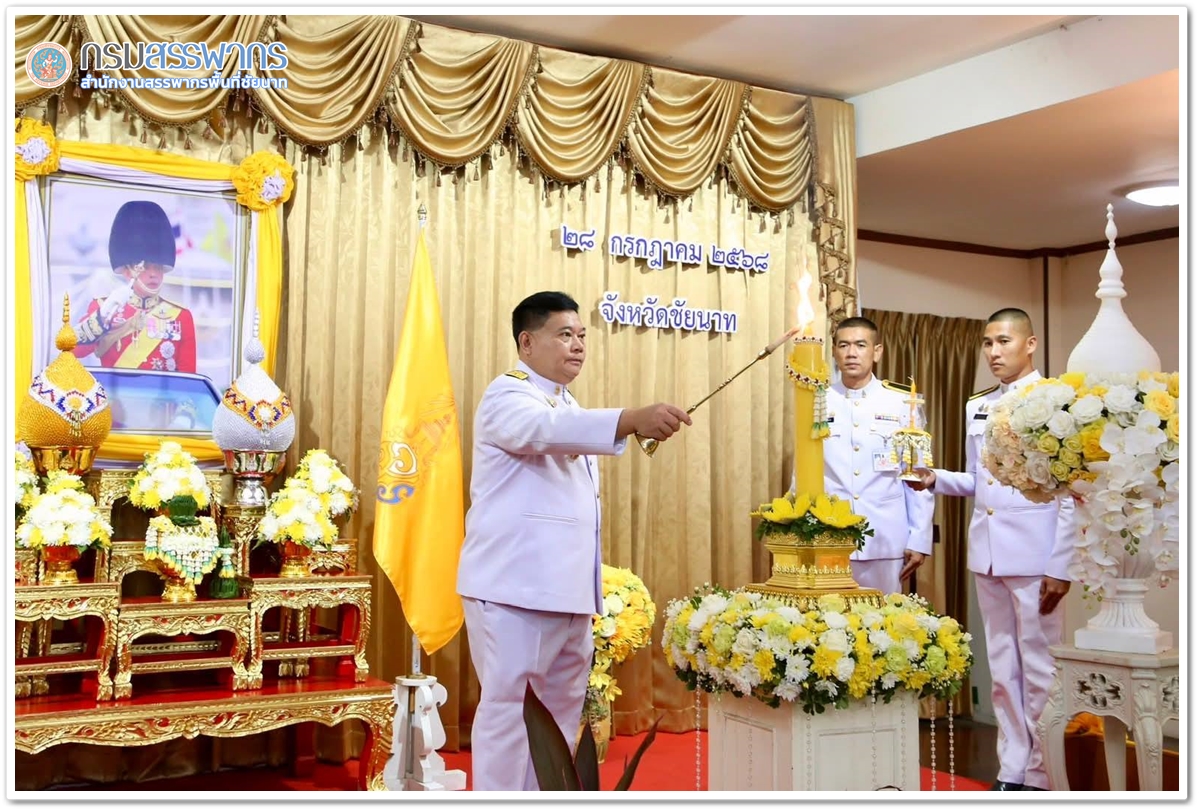 ค่ำวันนี้ 28 กรกฎาคม 2568 เวลา 19.19 น. ที่อาคารวิมลคุณากร ศาลากลางจังหวัดชัยนาท นายนที มนตริวัต ผู้ว่าราชการจังหวัดชัยนาท พร้อมด้วยเหล่าข้าราชการ ร่วมพิธีราชสดุดี และจุดเทียนชัยถวายพระพรชัยมงคล ถวายเครื่องราชสักการะ วางพานพุ่มทอง วางพานพุ่มเงิน พระบาทสมเด็จ พระปรเมนทรรามาธิบดี ศรีสินทรมหาวชิราลงกรณ พระวชิรเกล้าเจ้าอยู่หัว รัชกาลที่ 10 แห่งพระบรมราชจักรีวงศ์ เนื่องในโอกาสวันเฉลิมพระชนมพรรษา 28 กรกฎาคม 2568