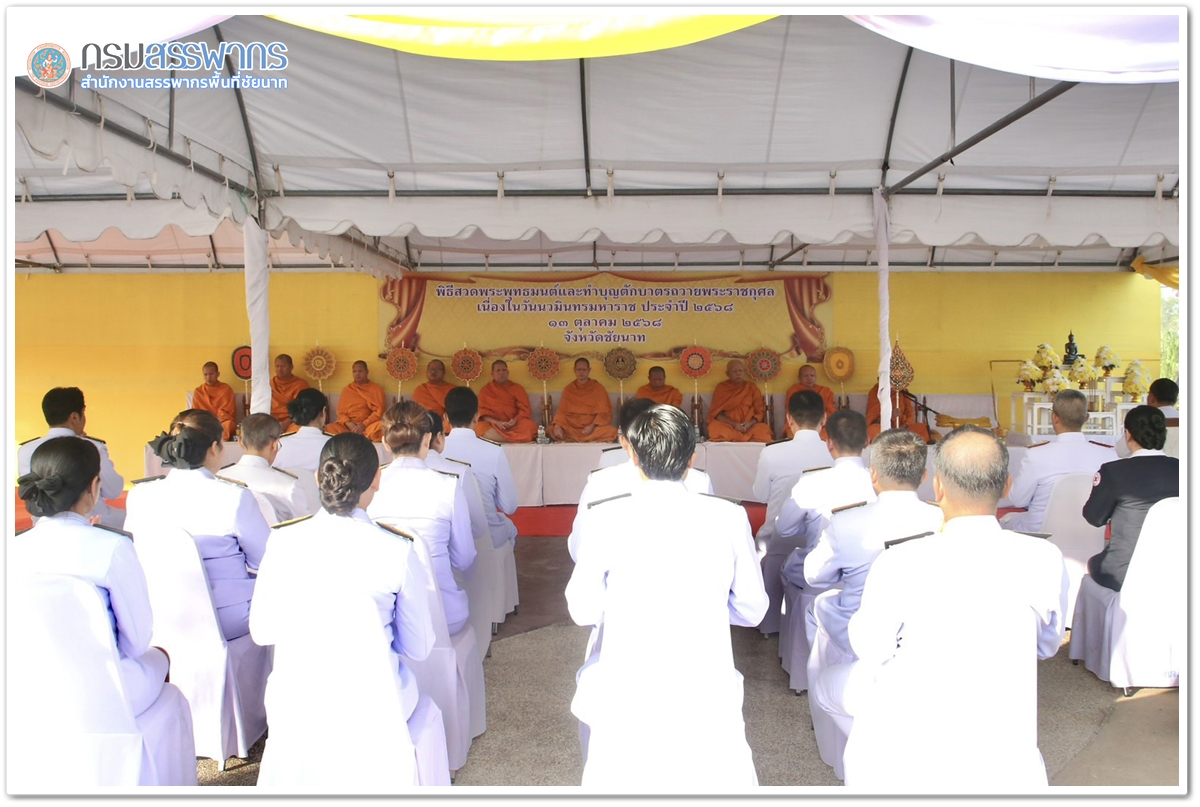 เวลา 07.20 น. ที่ บริเวณเขื่อนเรียงหิน หน้าศาลากลางจังหวัดชัยนาท นายนที มนตริวัต ผู้ว่าราชการจังหวัดชัยนาท เป็นประธานพิธีพิธีสวดพระพุทธมนต์ และทำบุญตักบาตรถวายเป็นพระราชกุศล พระสงฆ์จำนวน 89 รูป เนื่องในวันนวมินทรมหาราช 13 ตุลาคม 2568 โดยมี ข้าราชราชการ และประชาชนชาวชัยนาท พร้อมใจใส่เสื้อสีเหลือง ร่วมพิธีเป็นจำนวนมาก เพื่อถวายเป็นพระราชกุศล และน้อมรำลึกในพระมหากรุณาธิคุณอันหาที่สุดมิได้ของพระองค์ที่ทรงมีต่อปวงชนชาวไทย โดยมีพระราชวชิรกิจจาทร เจ้าคณะจังหวัดชัยนาท เจ้าอาวาสวัดพระบรมธาตุวรวิหาร เป็นประธานฝ่ายสงฆ์