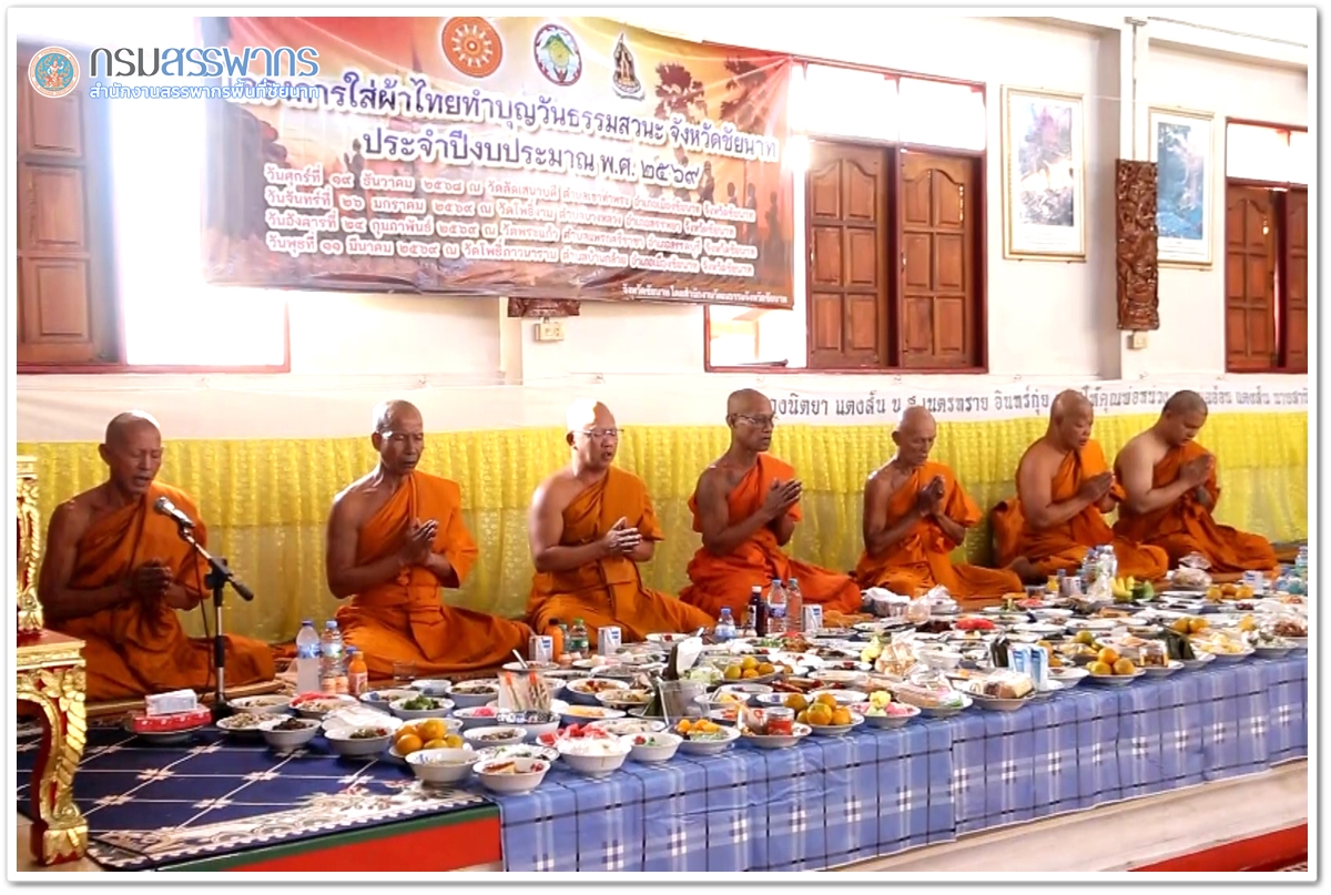 สำนักงานสรรพากรพื้นที่สาขาเมืองชัยนาท เข้าร่วมกิจกรรมทำบุญตักบาตร โครงการใส่ผ้าไทยทำบุญวันธรรมสวนะ ประจำปีงบประมาณ พ.ศ. 2569 ในวันที่ 19 ธันวาคม 2568 ณ วัดลัดเสนาบดี ตำบลเขาท่าพระ อำเภอเมืองชัยนาท จังหวัดชัยนาท โดยมีนายภูมิวัชร์ อุดมทรัพย์ ผู้ว่าราชการจังหวัดชัยนาท เป็นประธานโครงการใส่ผ้าไทยทำบุญวันธรรมสวนะ จังหวัดชัยนาท พร้อมด้วยส่วนราชการ และพุทธศาสนิกชน ร่วมโครงการใส่ผ้าไทยทำบุญวันธรรมสวนะ จังหวัดชัยนาท เพื่อให้หน่วยงานราชการและประชาชนทั่วไป ได้มีโอกาสทำบุญในวันธรรมสวนะ แสดงตนเป็นพุทธมามกะ ใกล้ชิดพระรัตนตรัย เข้าใจเกี่ยวกับหลักธรรมคำสอนทางพระพุทธศาสนา สามารถนำหลักธรรมไปปรับใช้ในชีวิตประจำวันได้อย่างถูกต้องเหมาะสม