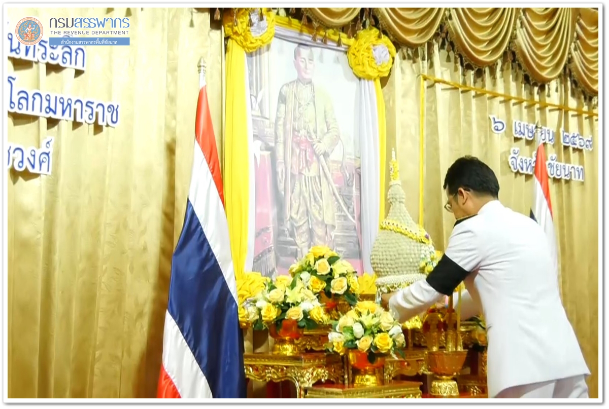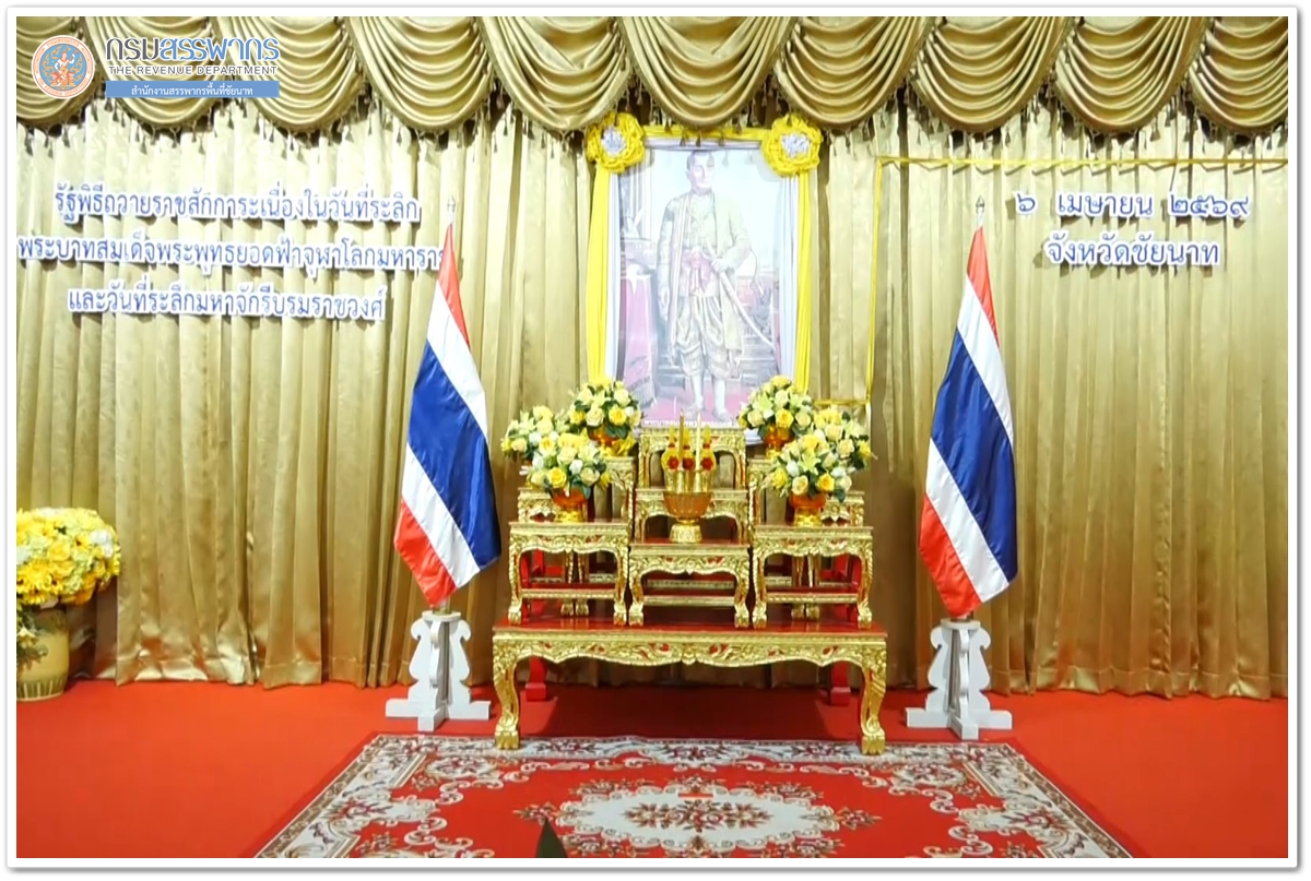 สำนักงานสรรพากรพื้นที่ชัยนาท นำโดยนางสาวศิริลักษณ์ ภู่สอาด เจ้าพนักงานสรรพากรอาวุโส พร้อมคณะ เข้าร่วมพิธีวางพานพุ่มดอกไม้ถวายราชสักการะ เนื่องใน “วันพระบาทสมเด็จพระพุทธยอดฟ้าจุฬาโลกมหาราช และวันที่ระลึกมหาจักรีบรมราชวงศ์” ประจำปี 2569 ในวันที่ 3 เมษายน 2569 ณ อาคารวิมลคุณากร ศาลากลางจังหวัดชัยนาท นายภูมิวัชร์ อุดมทรัพย์ ผู้ว่าราชการจังหวัดชัยนาท เป็นประธานในพิธีวางพานพุ่มดอกไม้ถวายราชสักการะ โดยมี หัวหน้าส่วนราชการ และข้าราชการ ร่วมในพิธี และมีพระราชวชิรกิจจาทร เจ้าคณะจังหวัดชัยนาท เจ้าอาวาสวัดพระบรมธาตุ วรวิหาร เป็นประธานฝ่ายสงฆ์ พร้อมด้วยคณะสงฆ์จังหวัดชัยนาท ร่วมประกอบพิธีฯ