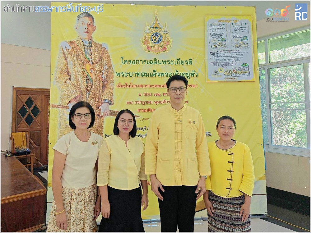 สำนักงานสรรพากรพื้นที่สระบุรีเข้าร่วมพิธีเจริญพระพุทธมนต์ เฉลิมพระเกียรติถวายพระพรชัยมงคลแด่พระบาทสมเด็จพระเจ้าอยู่หัวเนื่องในโอกาสวันเฉลิมพระชนมพรรษา 6 รอบ ครั้งที่ 11