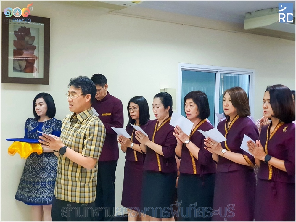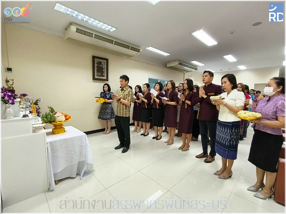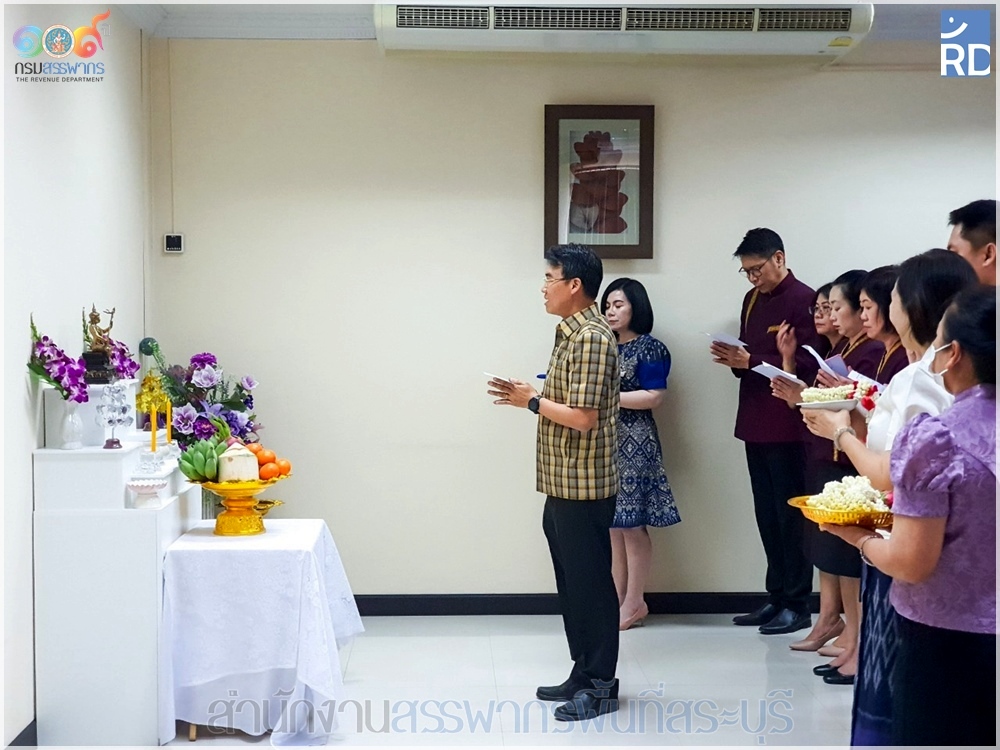 นายกฤษณ์ อัครพงศ์พิสัย สรรพากรพื้นที่สระบุรี พร้อมคณะผู้บริหาร และเจ้าหน้าที่ในสังกัด ประกอบพิธีอัญเชิญพระอุเทนธรรมราชา สถิต ณ สถานที่ประดิษฐาน เพื่อเป็นที่เคารพสักการะ และสิริมงคลแก่เจ้าหน้าที่ทุกคน ในสำนักงานสรรพากรพื้นที่สระบุรี