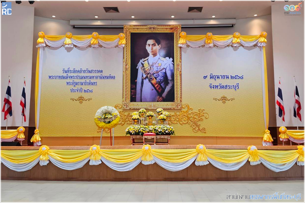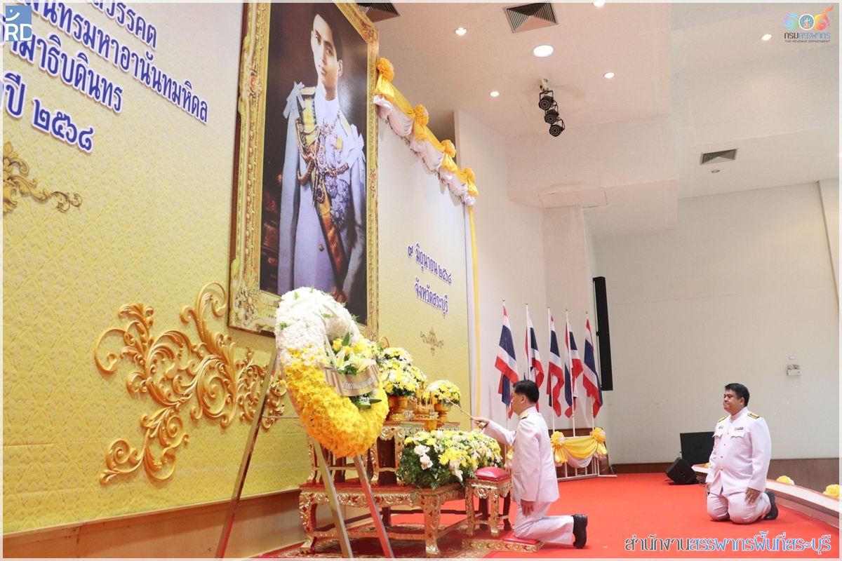 ท่านกฤษณ์ อัครพงศ์พิสัย สรรพากรพื้นที่สระบุรี มอบหมายให้ ทีมกำกับดูแลพิเศษนำโดย นายปรเมษฐ์ สินสู่ ตำแหน่งนักตรวจสอบภาษีชำนาญการ รักษาการในตำแหน่งนักวิชาการสรรพากรชำนาญการพิเศษ พร้อมด้วยเจ้าหน้าที่ในสังกัด เป็นผู้แทนเข้าร่วมพิธีวางพวงมาลาถวายราชสักการะ และถวายราชสดุดี เนื่องในวันคล้ายวันสวรรรคตของพระบาทสมเด็จพระปรเมนทรมหาอานันทมหิดล พระอัฐมรามาธิบดินทร ประจำปี 2568