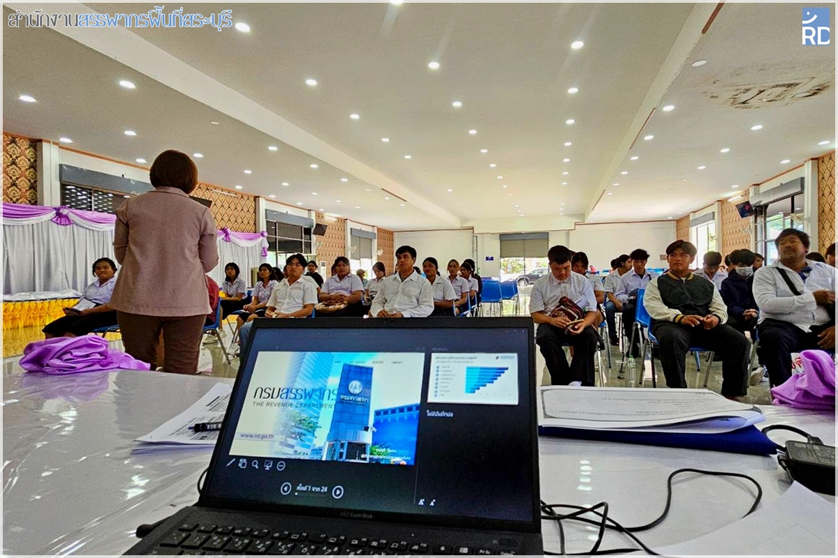 ท่านกฤษณ์ อัครพงศ์พิสัย สรรพากรพื้นที่สระบุรี มอบหมายให้ส่วนกรรมวิธีและคืนภาษี นำโดยนางดวงฤดี ปิ่นทอง นักวิชาการสรรพากรชำนาญการพิเศษ พร้อมด้วยเจ้าหน้าที่ เข้าร่วมเป็นวิทยากรให้ความรู้เรื่อง "กฎหมายสำคัญสำหรับผู้ประกอบการ" ในโครงการค่ายสะเต็มศึกษาส่งเสริมการเรียนรู้เพื่อพัฒนาทักษะอาชีพ