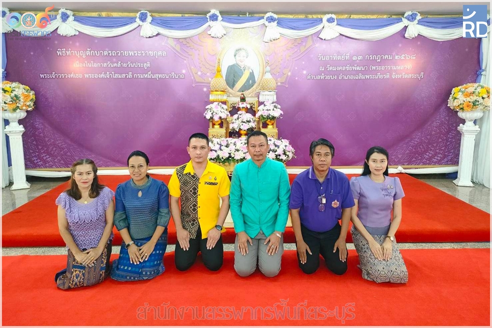 ท่านกฤษณ์ อัครพงศ์พิสัย สรรพากรพื้นที่สระบุรี มอบหมายให้ นางสาวภรพิมล จันทพรึก ตำแหน่งสรรพากรอำเภอ สำนักงานสรรพากรพื้นที่สาขาเฉลิมพระเกียรติ พร้อมด้วยเจ้าหน้าที่ในสังกัด เป็นผู้แทนเข้าร่วมพิธีทำบุญตักบาตรถวายพระราชกุศลเนื่องในโอกาสวันคล้ายวันประสูติพระเจ้าวรวงศ์เธอพระองค์เจ้าโสมสวลี กรมหมื่นสุทธนารีนาก