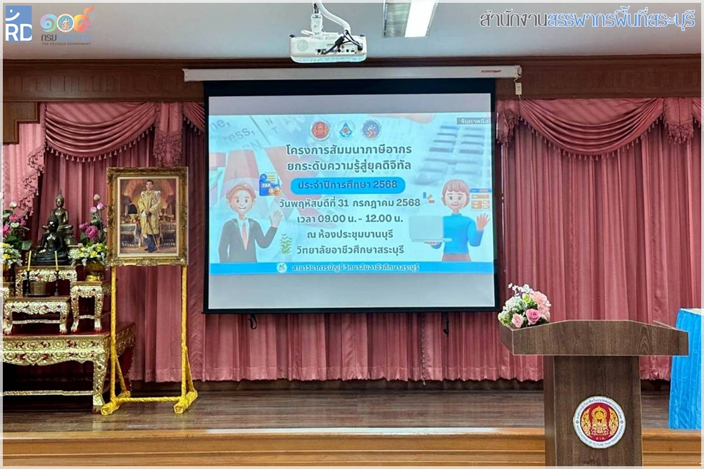 สำนักงานสรรพากรพื้นที่สระบุุรี ให้ความรู้ในโครงการ "สัมมนาภาษีอากร ยกระดับความรู้สู่ยุคดิจิทัล" ปีการศึกษา 2568