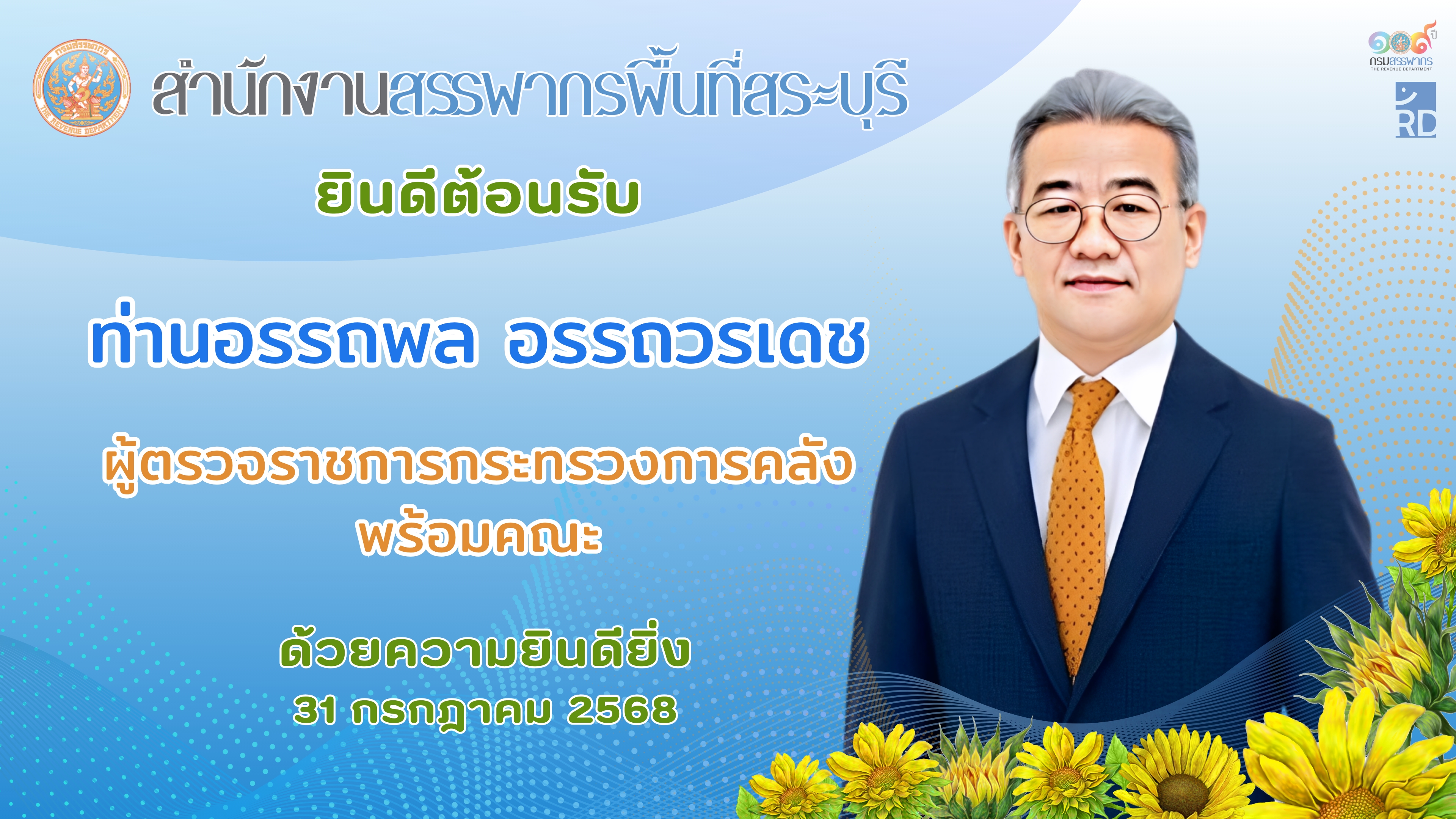 ท่านกฤษณ์ อัครพงศ์พิสัย สรรพากรพื้นที่สระบุรี ให้การต้อนรับ ท่านอรรถพล อรรถวรเดช ผู้ตรวจราชการกระทรวงการคลัง และคณะฯ เดินทางมาตรวจราชการติดตามการปฏิบัติงานตามนโยบายของกระทรวงการคลัง และภารกิจที่ได้รับมอบหมาย ตลอดจนรับฟังปัญหาและอุปสรรคในการปฏิบัติงาน