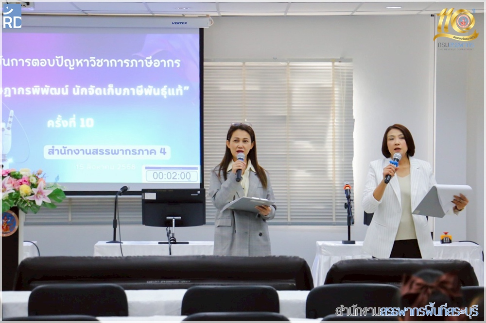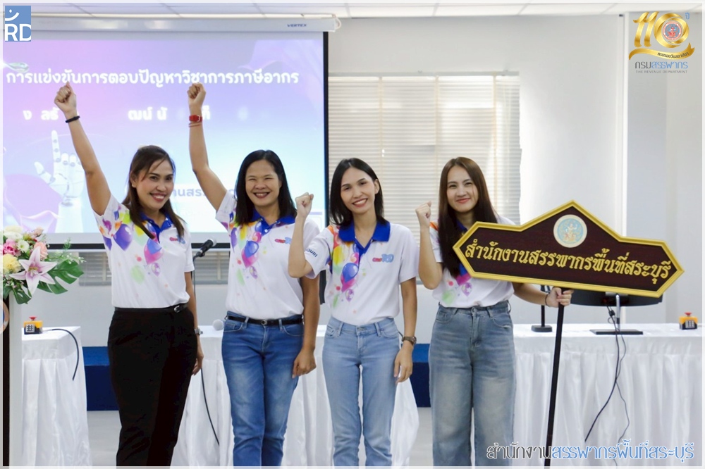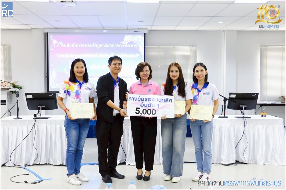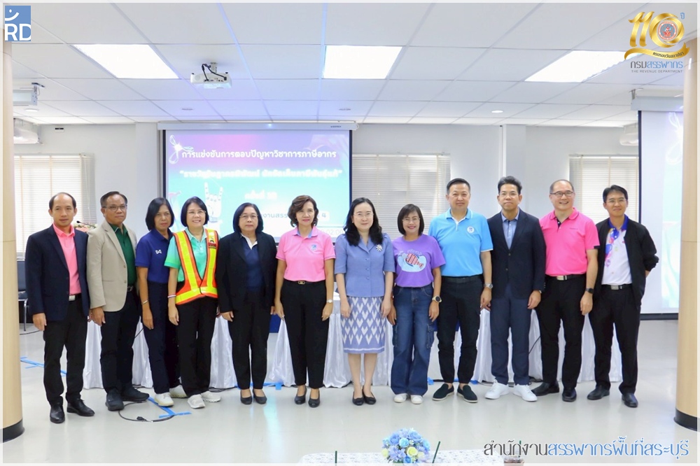 สำนักงานสรรพากรพื้นที่สระบุรี เข้าร่วมแข่งขันตอบปัญหาภาษี "รางวัลรัษฎากรพิพัฒน์ นักจัดเก็บภาษีพันธุ์แท้ ครั้งที่ 10" เพื่อคัดเลือกเป็นตัวแทนของสำนักงานสรรพากรภาค 4 ภายใต้ชื่อทีม "สระบุรี Wow Wow"