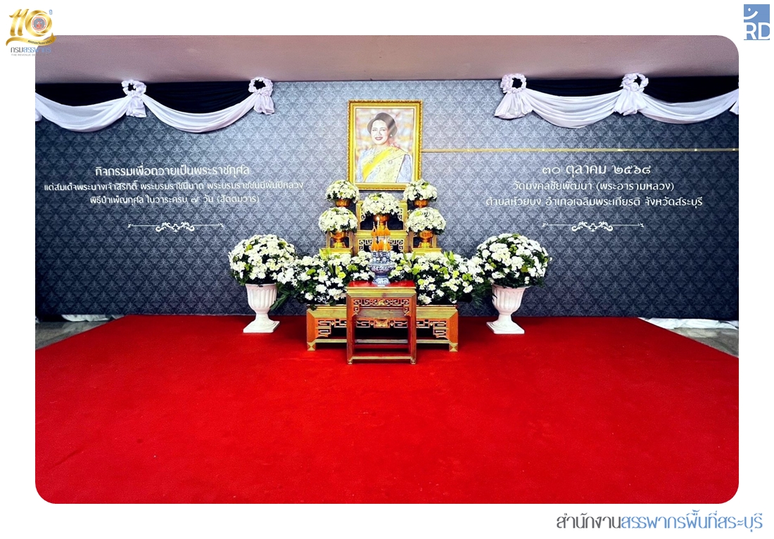 ท่านกฤษณ์ อัครพงศ์พิสัย สรรพากรพื้นที่สระบุรี พร้อมด้วยคณะผู้บริหาร ร่วมพิธีบำเพ็ญกุศลสัตตมวาร เพื่ออุทิศถวายพระราชกุศลแด่สมเด็จพระนางเจ้าสิริกิติ์ พระบรมราชินีนาถ พระบรมราชชนนีพันปีหลวง โดยมีนายบัญชา เชาวรินทร์ ผู้ว่าราชการจังหวัดสระบุรี เป็นประธานในพิธีบำเพ็ญกุศลสัตตมวาร เพื่ออุทิศถวายพระราชกุศลแด่สมเด็จพระนางเจ้าสิริกดิ์ พระบรมราชินีนาถ พระบรมราชชนนีพันปีหลวง เพื่อแสดงความจงรักภักดี ความอาลัย และน้อมรำลึกในพระมหากรุณาธิคุณอย่างหาที่สุดมิได้