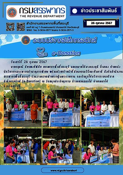 ✤ การจัดบูธลงทะเบียนระบบบริจาคอิเล็กทรอนิกส์ (e-Donation) ในพิธีทอดกฐินพระราชทาน ณ วัดสมุหประดิษฐาราม พระอารามหลวง