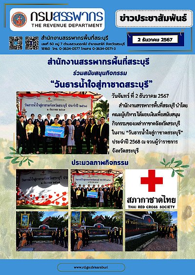 ✤ สำนักงานสรรพากรพื้นที่สระบุรี ร่วมสนับสนุนกิจกรรม "วันธารน้ำใจสู่กาชาดสระบุรี" ประจำปี 2568