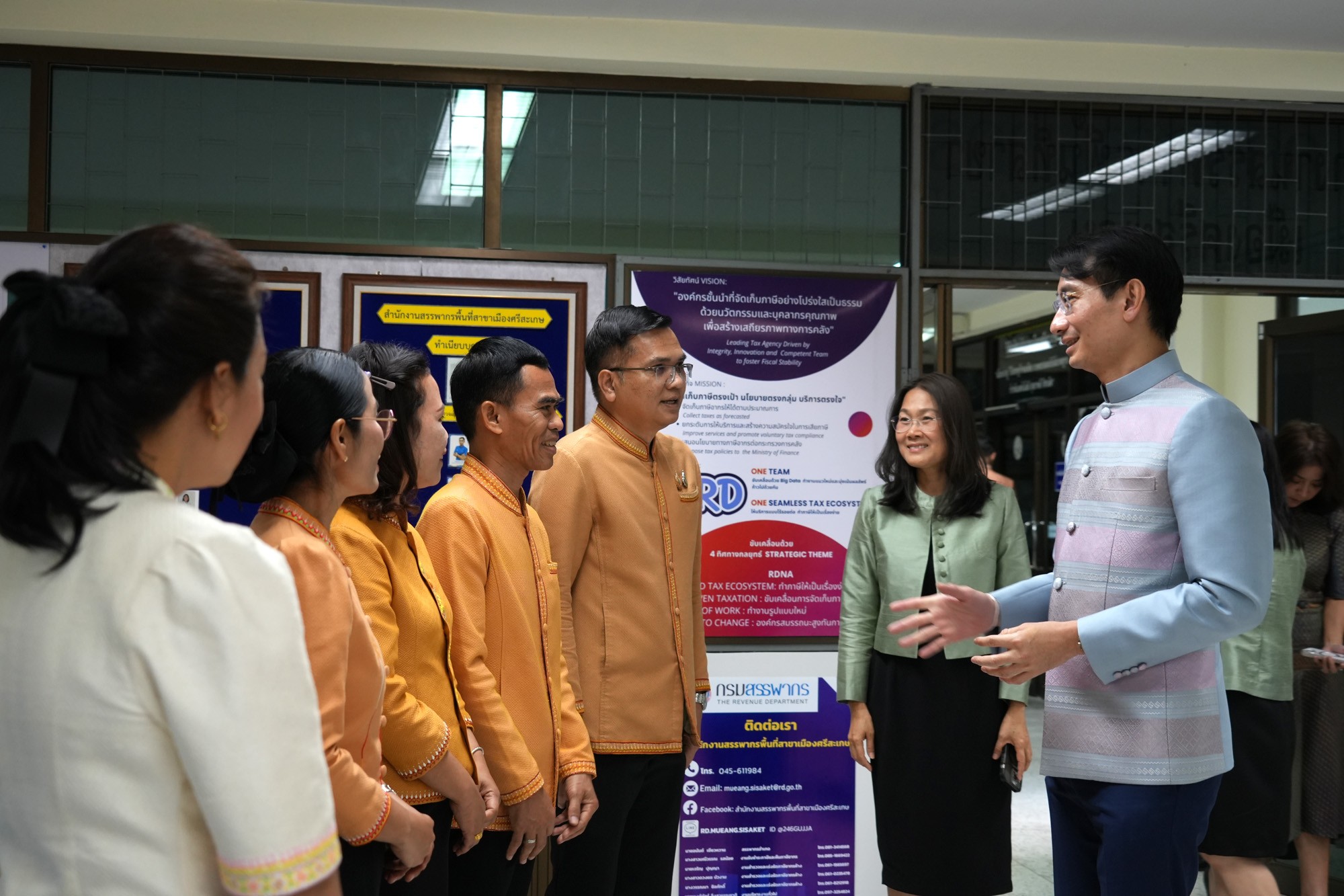 นายปิ่นสาย สุรัสวดี อธิบดีกรมสรรพากร พร้อมด้วยผู้บริหารกรมสรรพากร และคณะเข้าตรวจเยี่ยมสำนักงานสรรพากรภาค 9 และหน่วยงานในสังกัด ได้แก่ สำนักงานสรรพากรพื้นที่ศรีสะเกษ สำนักงานสรรพากรพื้นที่สาขาเมืองศรีสะเกษ สำนักงานสรรพากรพื้นที่อุบลราชธานี และสำนักงานสรรพากรพื้นที่สาขาวารินชำราบ เพื่อมอบนโยบายในการปฏิบัติงาน รับทราบผลการดำเนินงานรวมถึงปัญหา อุปสรรค สร้างขวัญกำลังใจให้กับข้าราชการ และเจ้าหน้าที่ โดยมีนางสาวลักขณา ต่อพล สรรพากรภาค 9 พร้อมด้วยสรรพากรพื้นที่ทุกพื้นที่ในท้องที่ภาค 9 และข้าราชการ พนักงานราชการ และลูกจ้าง ในสังกัด ให้การต้อนรับ เมื่อวันที่ 19 พฤษภาคม 2568