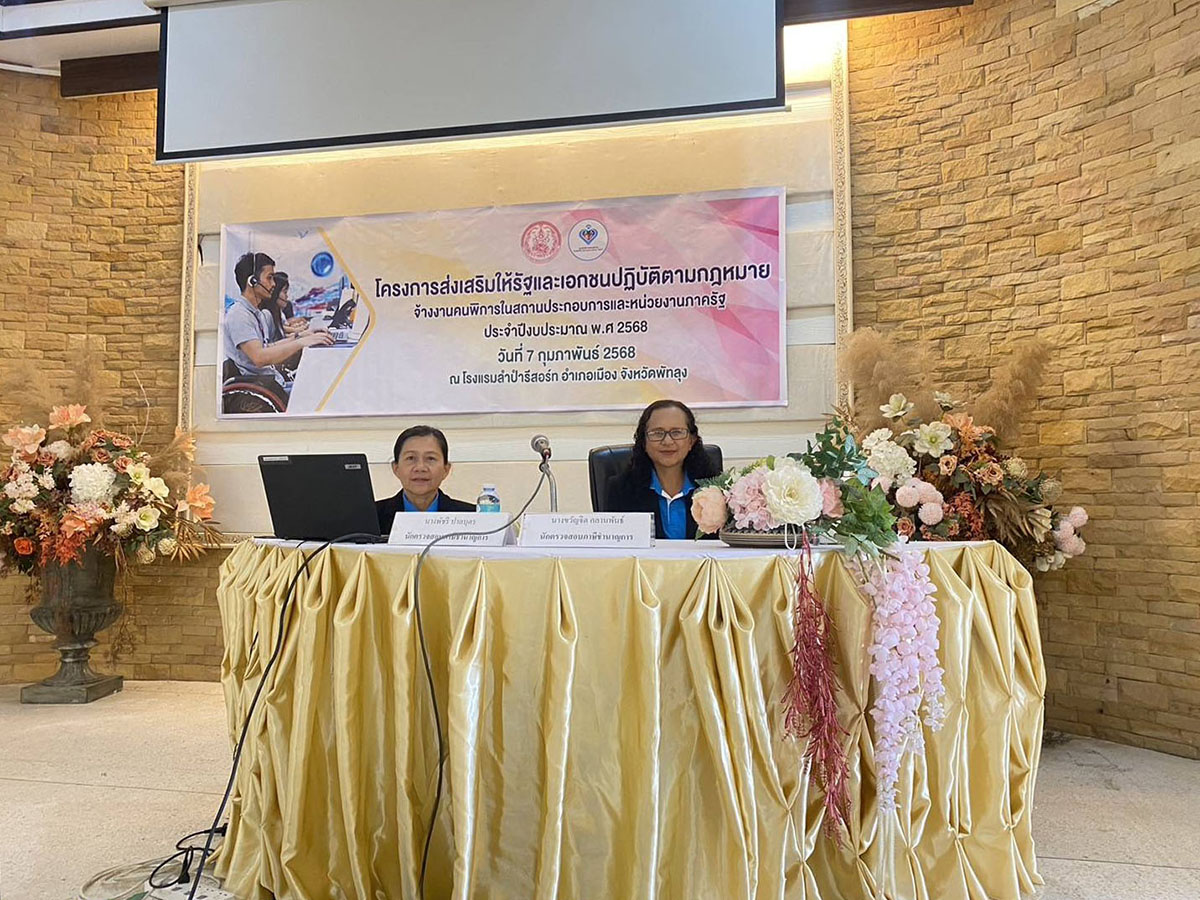 นางขวัญจิต จุลานุพันธ์ ตำแหน่ง นักตรวจสอบภาษีชำนาญการ และ นางพัชนี ปาลบุตร ตำแหน่ง นักตรวจสอบภาษีชำนาญการ ได้รับมอบหมายจากสรรพากรพื้นที่พัทลุง ไปเป็นวิทยากรบรรยายเรื่อง "สิทธิประโยชน์ทางภาษีของนายจ้างจากการปฏิบัติตามกฎหมายจ้างงานคนพิการ การดูแลคนพิการ ตามพระราชบัญญัติส่งเสริมและพัฒนาคุณภาพชีวิตคนพิการ พ.ศ. 2550 และที่แก้ไขเพิ่มเติม (ฉบับที่ 2) พ.ศ. 2556" ในการประชุมโครงการส่งเสริมให้รัฐและเอกชนปฏิบัติตามกฎหมายจ้างงานคนพิการในสถานประกอบการ และหน่วยงานภาครัฐ ประจำปีงบประมาณ พ.ศ. 2568 จัดโดยสำนักงานพัฒนาสังคมและความมั่นคงของมนุษย์จังหวัดพัทลุง ณ โรงแรมลำปำรีสอร์ท หมู่ที่ 6 ตำบลลำปำ อำเภอเมืองพัทลุง จังหวัดพัทลุง เมื่อวันที่ 7 กุมภาพันธ์ 2568