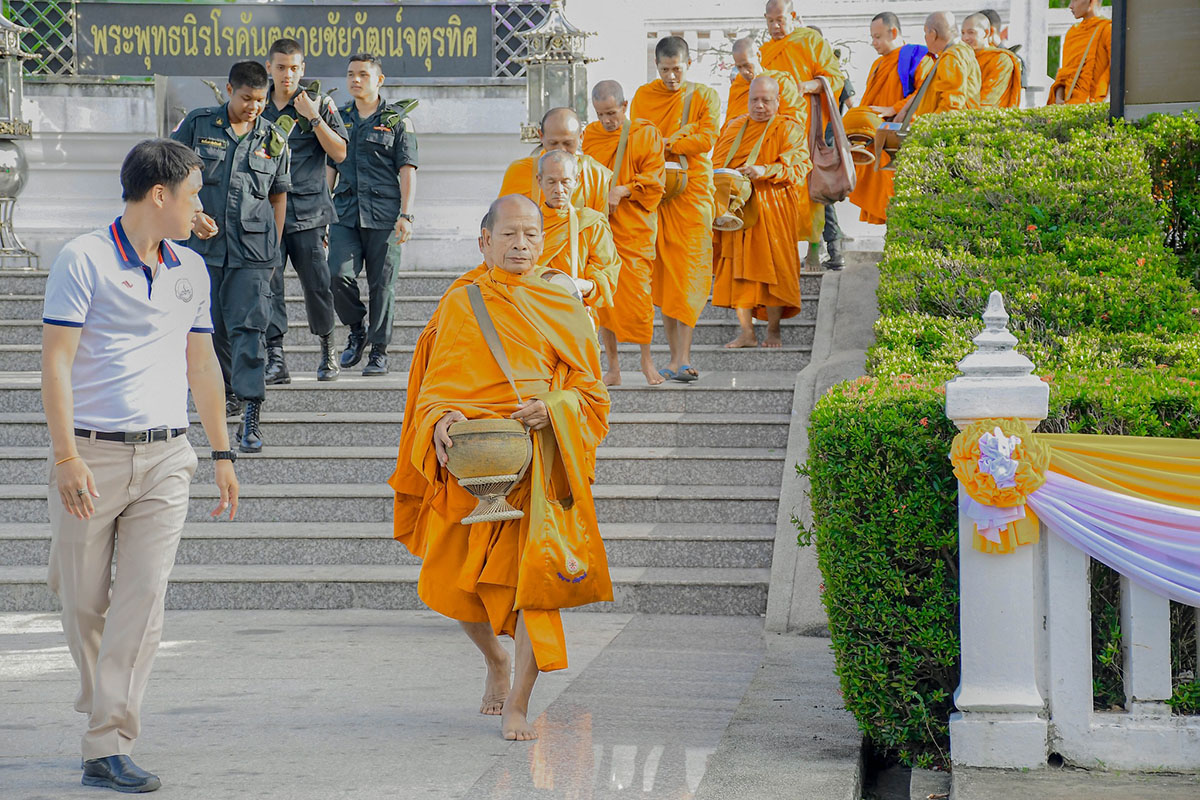 พิธีทำบุญตักบาตร เนื่องในวันเปิดงานสมโภชพระพุทธนิรโรคันตรายชัยวัฒน์จตุรทิศ ประจำปี 2568