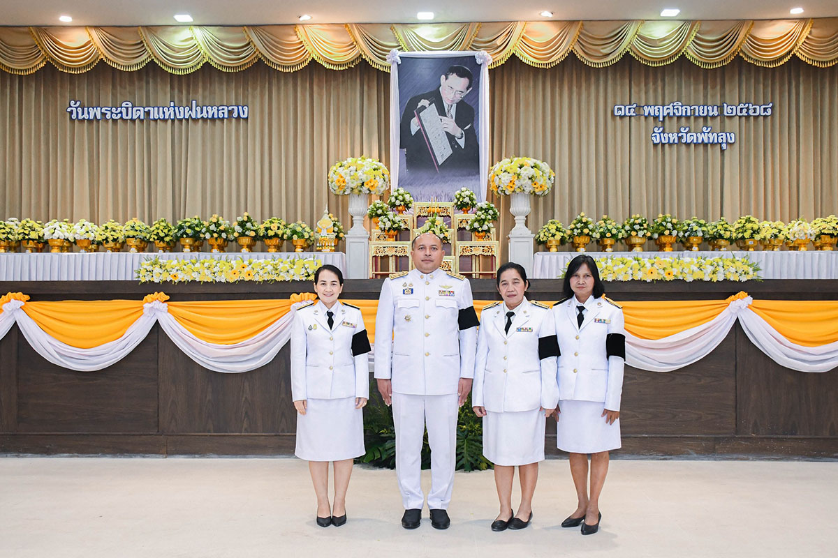 นางสาวอุทุมพร มีเกิด หัวหน้าส่วนวางแผนและประเมินผล พร้อมด้วยคณะเจ้าหน้าที่ในสังกัด ได้รับมอบหมายจากสรรพากรพื้นที่พัทลุง ไปร่วมพิธีวางพานพุ่มดอกไม้สดถวายราชสักการะพระบาทสมเด็จพระบรมชนกาธิเบศร มหาภูมิพลอดุลยเดชมหาราช บรมนาถบพิตร เนื่องในวันพระบิดาแห่งฝนหลวง ประจำปี 2568 เพื่อน้อมรำลึกในพระมหากรุณาธิคุณของพระองค์ที่ทรงริเริ่ม "โครงการพระราชดำริฝนหลวง" เพื่อคิดค้น วิจัย และพัฒนาเทคโนโลยีฝนหลวงจนประสบผลสำเร็จ สามารถช่วยเหลือประชาชนให้รอดพ้นจากภัยแล้งและมีคุณภาพชีวิตที่ดีขึ้นจนถึงปัจจุบัน โดยนายธราวุธ ช่วยเกิด รองผู้ว่าราชการจังหวัดพัทลุง รักษาราชการแทนผู้ว่าราชการจังหวัดพัทลุง เป็นประธานในพิธี ณ หอประชุมจังหวัดพัทลุง ตำบลคูหาสวรรค์ อำเภอเมืองพัทลุง จังหวัดพัทลุง เมื่อวันที่ 14 พฤศจิกายน 2568