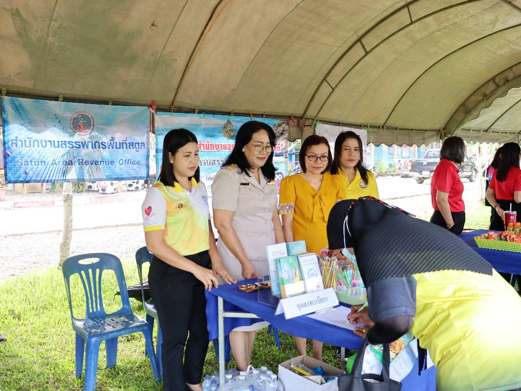 นายธวัช ชูแก้ว สรรพากรพื้นที่สตูล มอบหมายให้ นางปัทมพร คงอิน ผู้ช่วยสรรพากรพื้นที่สตูล พร้อมด้วย เจ้าหน้าที่สำนักงานสรรพากรพื้นที่สตูล ร่วมกับ สำนักงานสรรพากรพื้นที่สาขาท่าแพ ออกหน่วยโครงการหน่วยบำบัดทุกข์ บำรุงสุข สร้างรอยยิ้มให้ประชาชน จังหวัดสตูล (จังหวัดเคลื่อนที่) ประจำปีงบประมาณ พ.ศ. 2568 ครั้งที่ 3 ณ โรงเรียนบ้านท่าแพ หมู่ที่ 5 ตำบลท่าแพ อำเภอท่าแพ จังหวัดสตูล