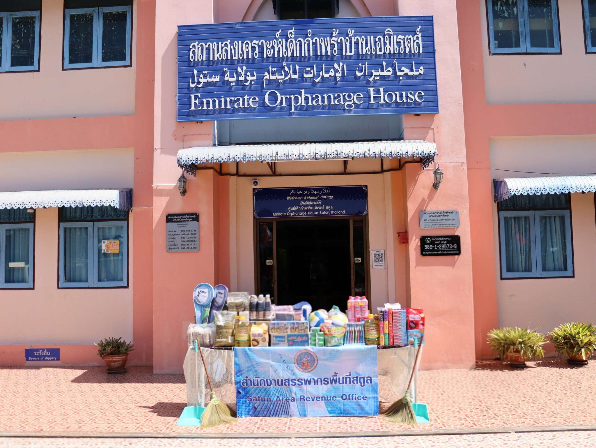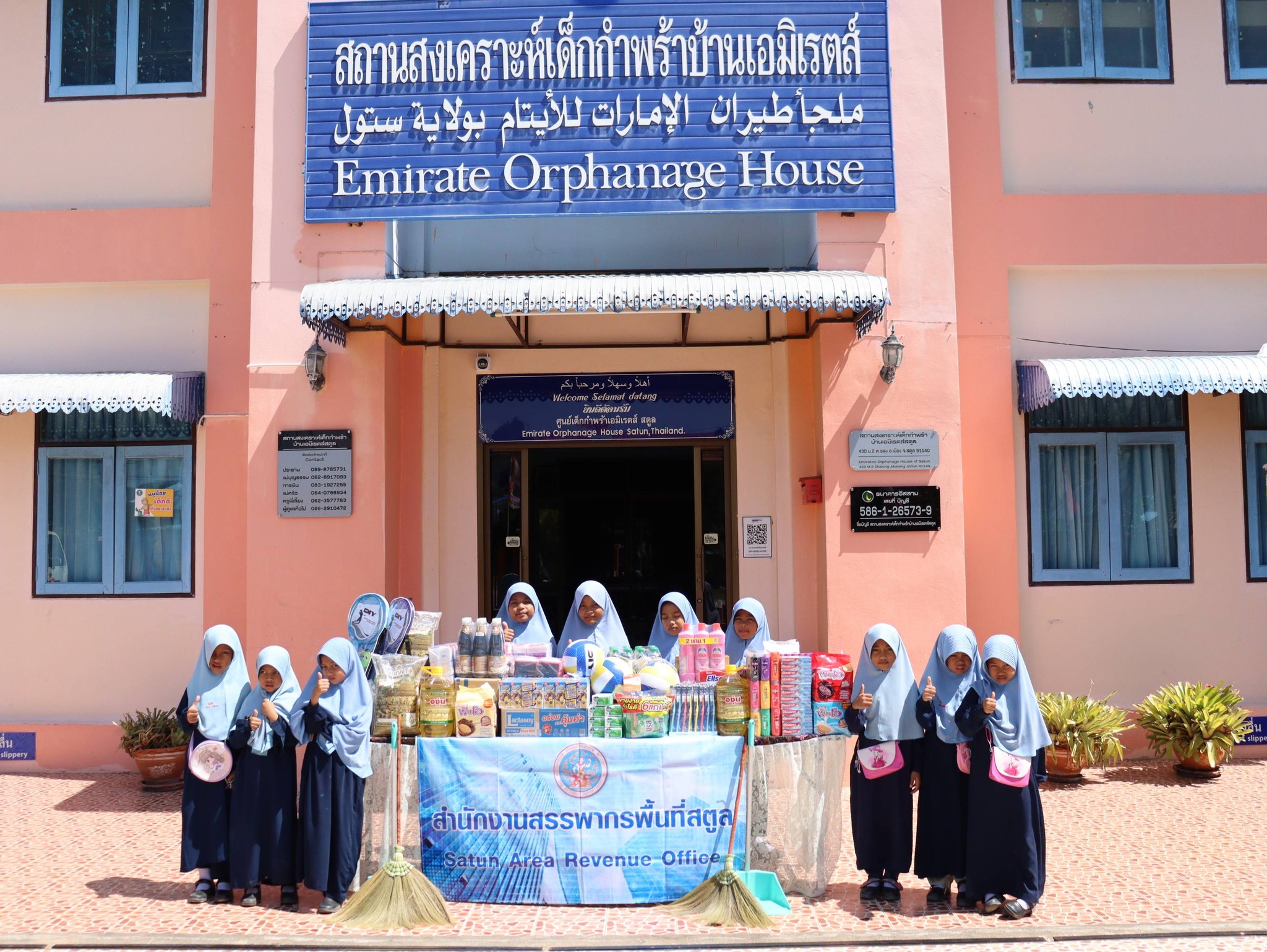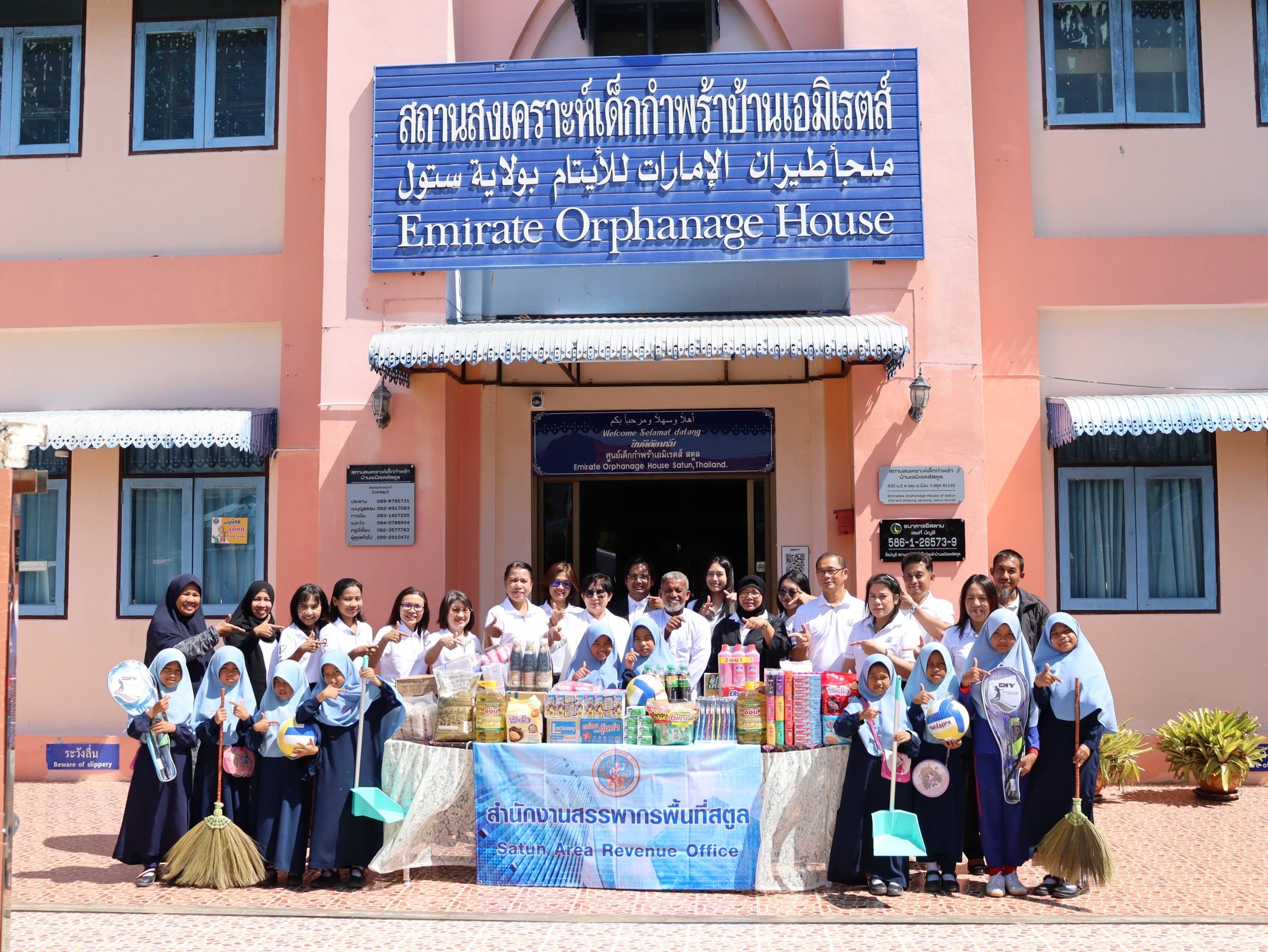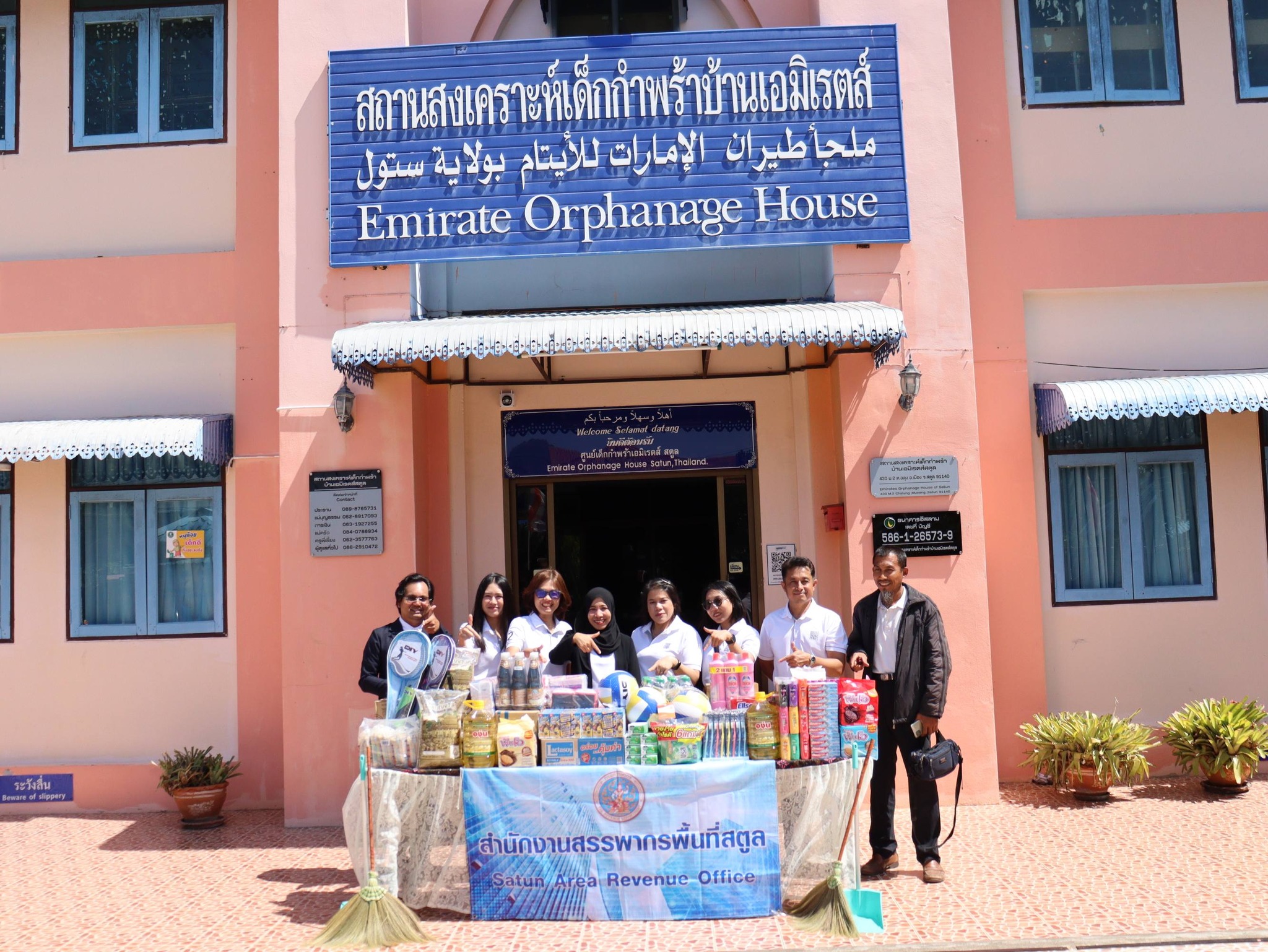 นางสาวสยุมพร อำนวยบุญทรัพย์ สรรพากรพื้นที่สตูล พร้อมด้วยคณะผู้บริหาร และเจ้าหน้าที่ในสังกัดสำนักงานสรรพากรพื้นที่สตูล ร่วมมอบสิ่งของ ตามโครงการทำบุญบริจาคสิ่งของอุปโภคบริโภคให้แก่สถานสงเคราะห์เด็กกำพร้า ณ สถานสงเคราะห์เด็กกำพร้าบ้านเอมิเรตส์สตูล หมู่ที่ ๒ ตำบลฉลุง อำเภอเมืองสตูล จังหวัดสตูล