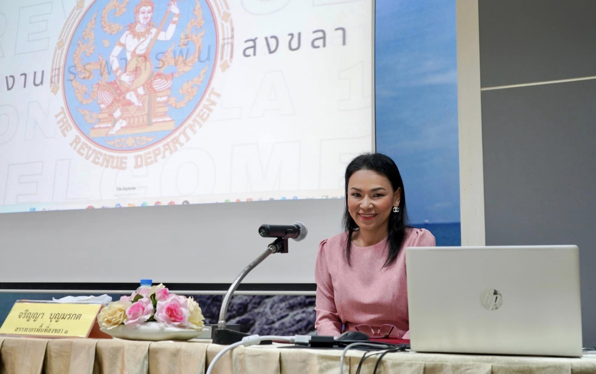 นางสาวจริญญา บุญมรกต สรรพากรพื้นที่สงขลา 1 เป็นประธานในพิธีเปิดโครงการอบรมหลักสูตร “การจัดทำใบกำกับภาษีอิเล็กทรอนิกส์ และใบรับอิเล็กทรอนิกส์ (e-Tax Invoice & e-Receipt)” เพื่อแนะนำการใช้งานระบบบริการจัดทำและนำส่งข้อมูลใบกำกับภาษีอิเล็กทรอนิกส์และใบรับอิเล็กทรอนิกส์ (e-Tax Invoice & e-Receipt) ให้แก่ผู้ประกอบการจดทะเบียนภาษีมูลค่าเพิ่มในท้องที่สำนักงานสรรพากรพื้นที่สงขลา 1 ณ ห้องประชุมชมวิว ชั้น 5 อาคารสำนักงานสรรพากรพื้นที่สงขลา 1