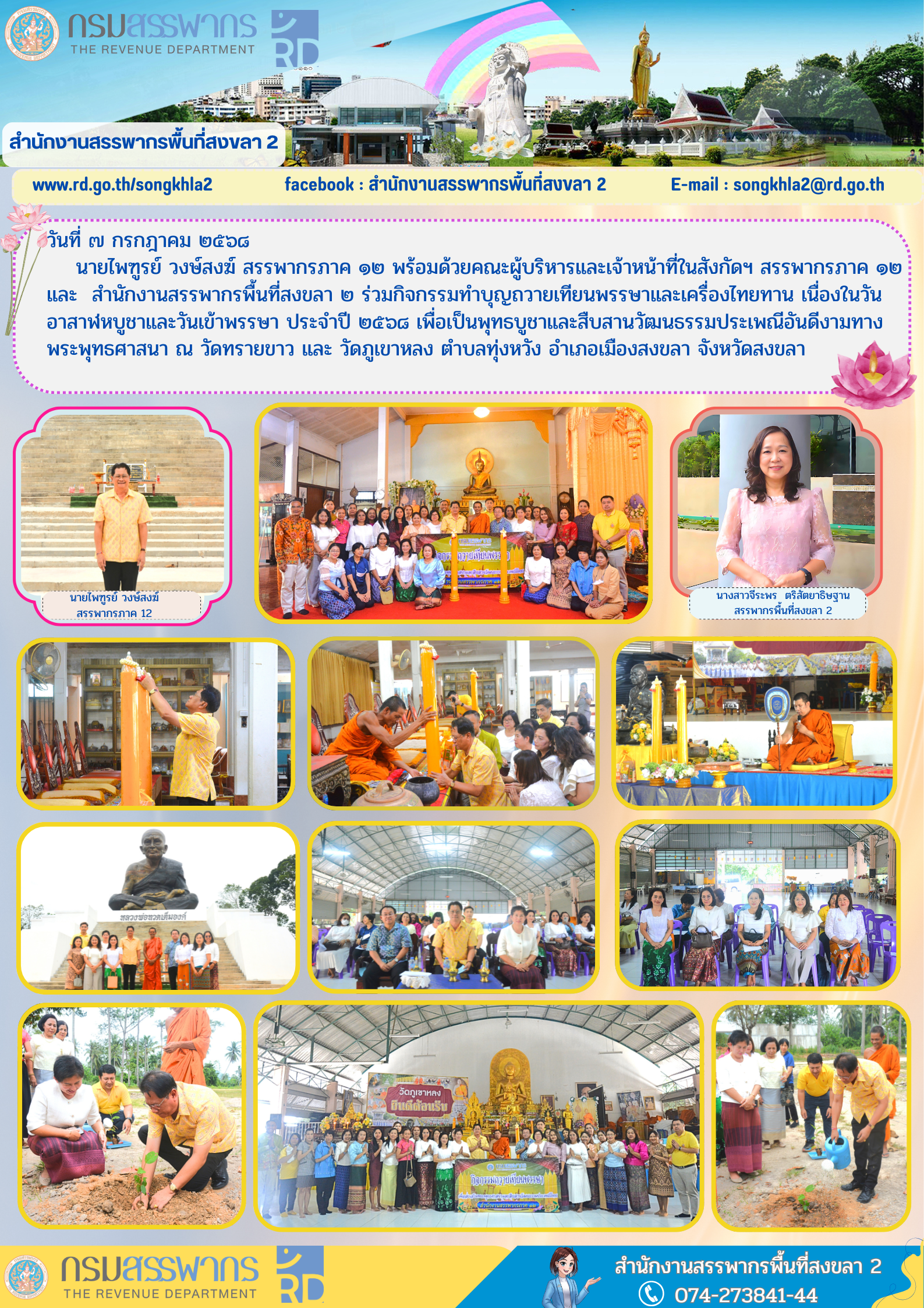 สำน้กงานสรรพากรภาค 12 และสำนักงานสรรพากรพื้นที่สงขลา 2 ร่วมกิจกรรมทำบุญถวายเทียนพรรษาและเครื่องไทยทาน เนื่องในวันอาสาฬหบูชาและวันเข้าพรรษา ประจำปี 2568
