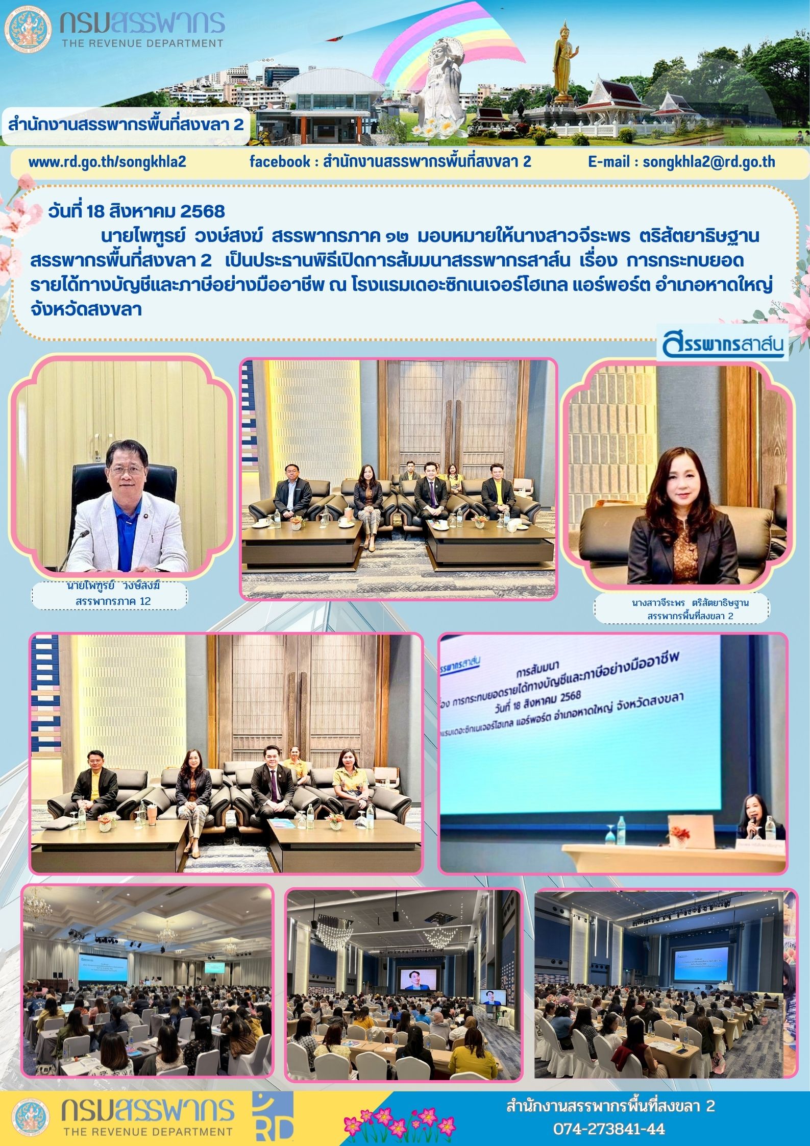 สัมมนาสรรพากรสาส์น เรื่อง การกระทบยอดรายได้ทางบัญชีและภาษีอย่างมืออาชีพ ณ โรงแรมเดอะซิกเนเจอร์โฮเทล แอร์พอร์ต อ.หาดใหญ่ จ.สงขลา