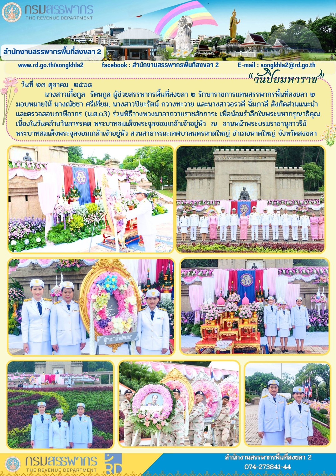 สำนักงานสรรพากรพื้นที่สงขลา 2 ร่วมพิธีวางพวงมาลาถวายราชสักการะ เพื่อน้อมรำลึกในพระมหากรุณาธิคุณเนื่องในวันคล้ายวันสวรรคต พระบาทสมเด็จพระจุลจอมเกล้าเจ้าอยู่หัว