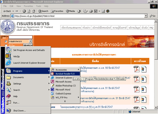 | ตัวอย่างขั้นตอนการเปิดใช้งานโปรแกรม Acrobat Reader |