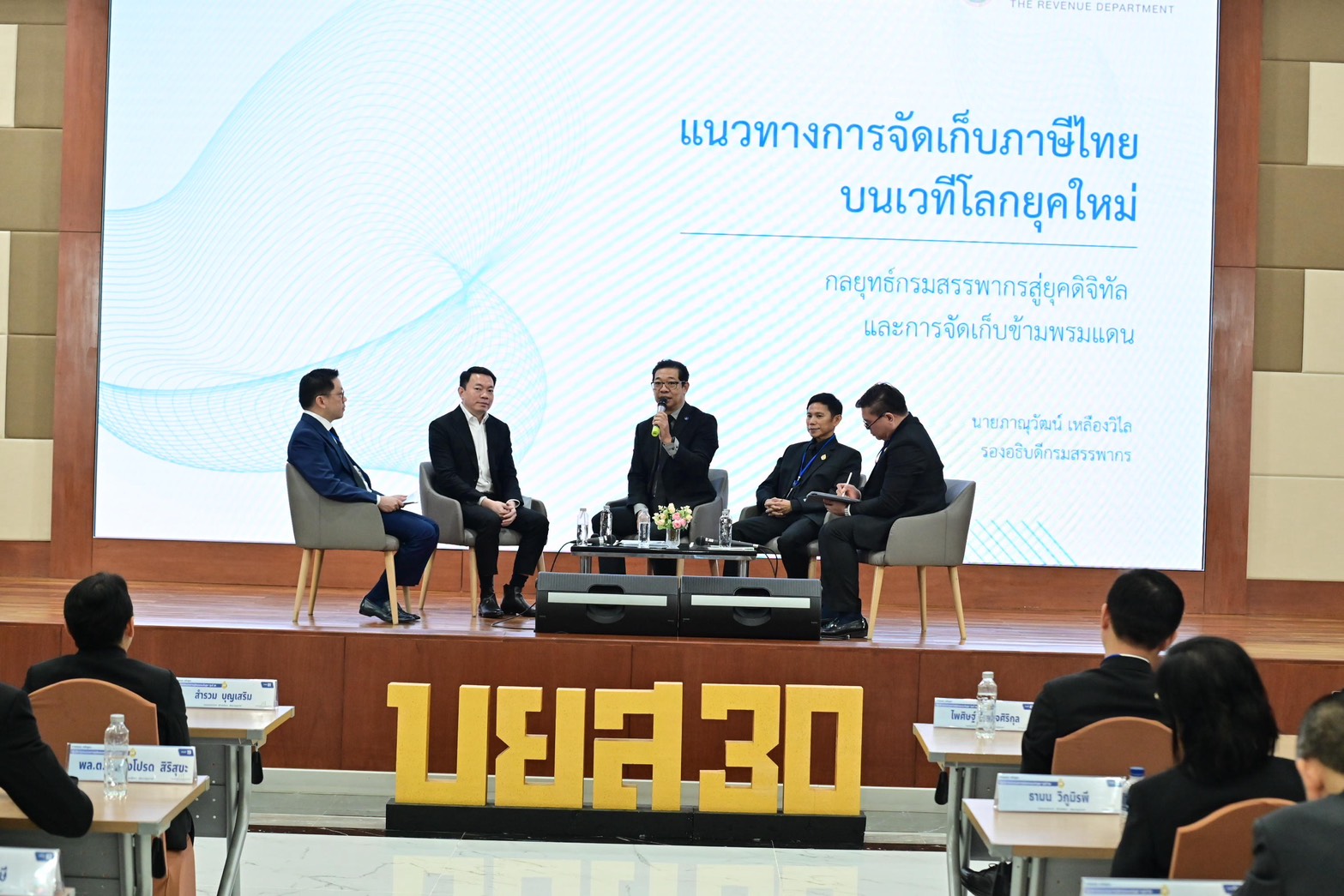 นายภาณุวัฒน์ เหลืองวิไล รองอธิบดีกรมสรรพากร เป็นวิทยากรบรรยายให้แก่ข้าราชการศาลและผู้แทนภาคเอกชนที่เข้ารับการอบรมหลักสูตรผู้บริหารกระบวนการยุติธรรมระดับสูง รุ่นที่ 30 โดยได้นำเสนอทิศทางการยกระดับการให้บริการดิจิทัลของกรมสรรพากร ครอบคลุมการจัดเก็บภาษีจากการให้บริการออนไลน์และแพลตฟอร์มต่างประเทศ มาตรฐานภาษีระหว่างประเทศ การใช้เทคโนโลยีและข้อมูลเพื่อเพิ่มประสิทธิภาพการจัดเก็บ ตลอดจนบทบาทของประเทศไทยในความร่วมมือด้านภาษีระดับสากล โดยเฉพาะ Pillar 2 และผลกระทบต่อระบบภาษีและนโยบายการแข่งขันทางเศรษฐกิจของประเทศ และยังได้มีการแลกเปลี่ยนความคิดเห็นและประสบการณ์ด้านกฎหมายและการบังคับใช้ อันช่วยเสริมสร้างความเข้าใจร่วมกันระหว่างหน่วยงานในกระบวนการยุติธรรมและภาคเอกชนเกี่ยวกับการพัฒนาระบบภาษีไทยในบริบทเศรษฐกิจโลกยุคใหม่ ทั้งนี้ กิจกรรมดังกล่าวมีวัตถุประสงค์เพื่อส่งเสริมองค์ความรู้ สร้างเครือข่ายความร่วมมือ และสนับสนุนการพัฒนาระบบการจัดเก็บภาษีของประเทศไทยให้มีประสิทธิภาพ โปร่งใส และเท่าทันการเปลี่ยนแปลงของเศรษฐกิจโลกในยุคดิจิทัล