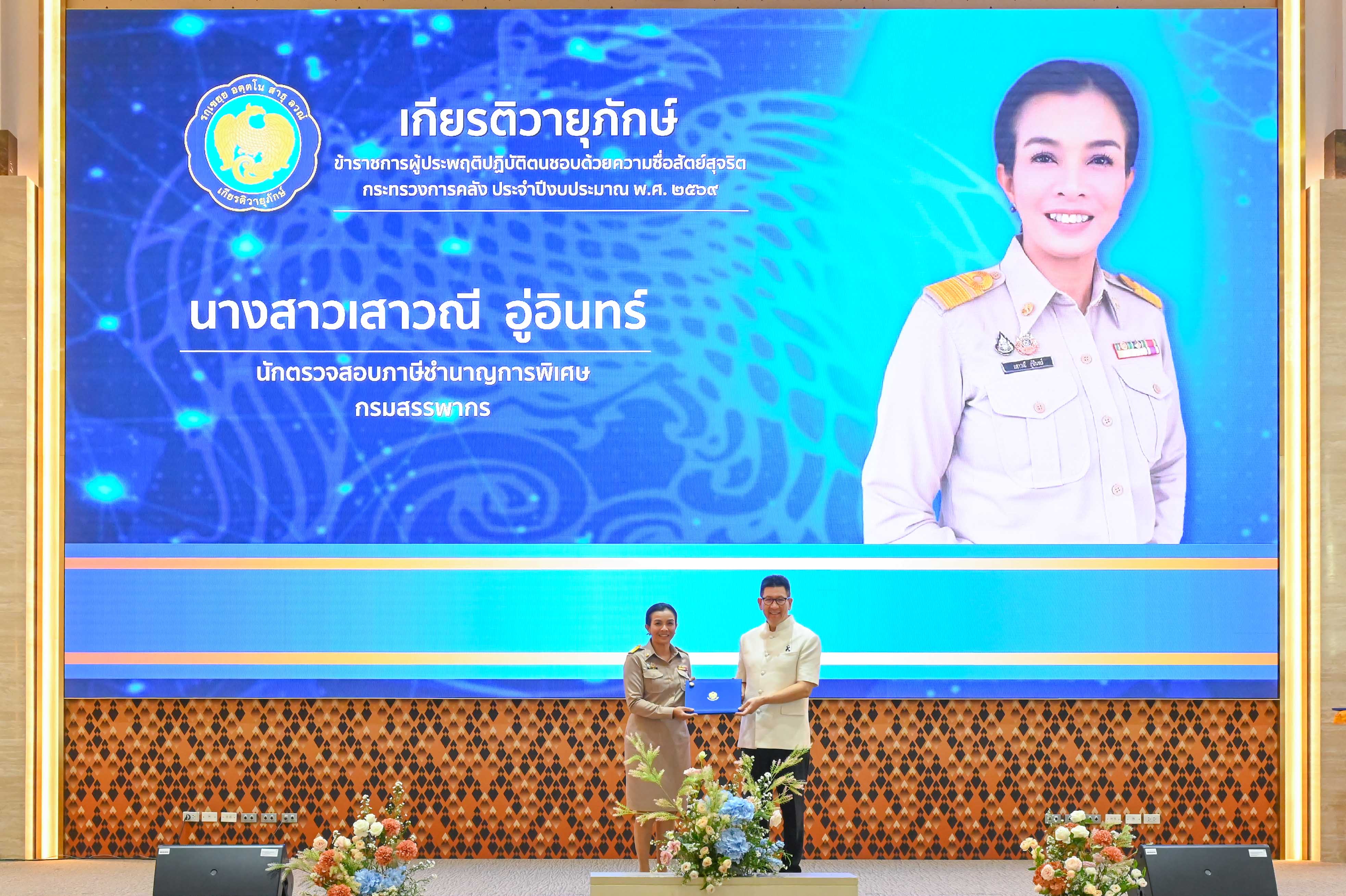 และพิธีมอบรางวัลผู้ประพฤติปฏิบัติตนชอบด้วยความซื่อสัตย์สุจริต ประจำปีงบประมาณ พ.ศ. 2569 ของหน่วยงานในสังกัดกระทรวงการคลัง