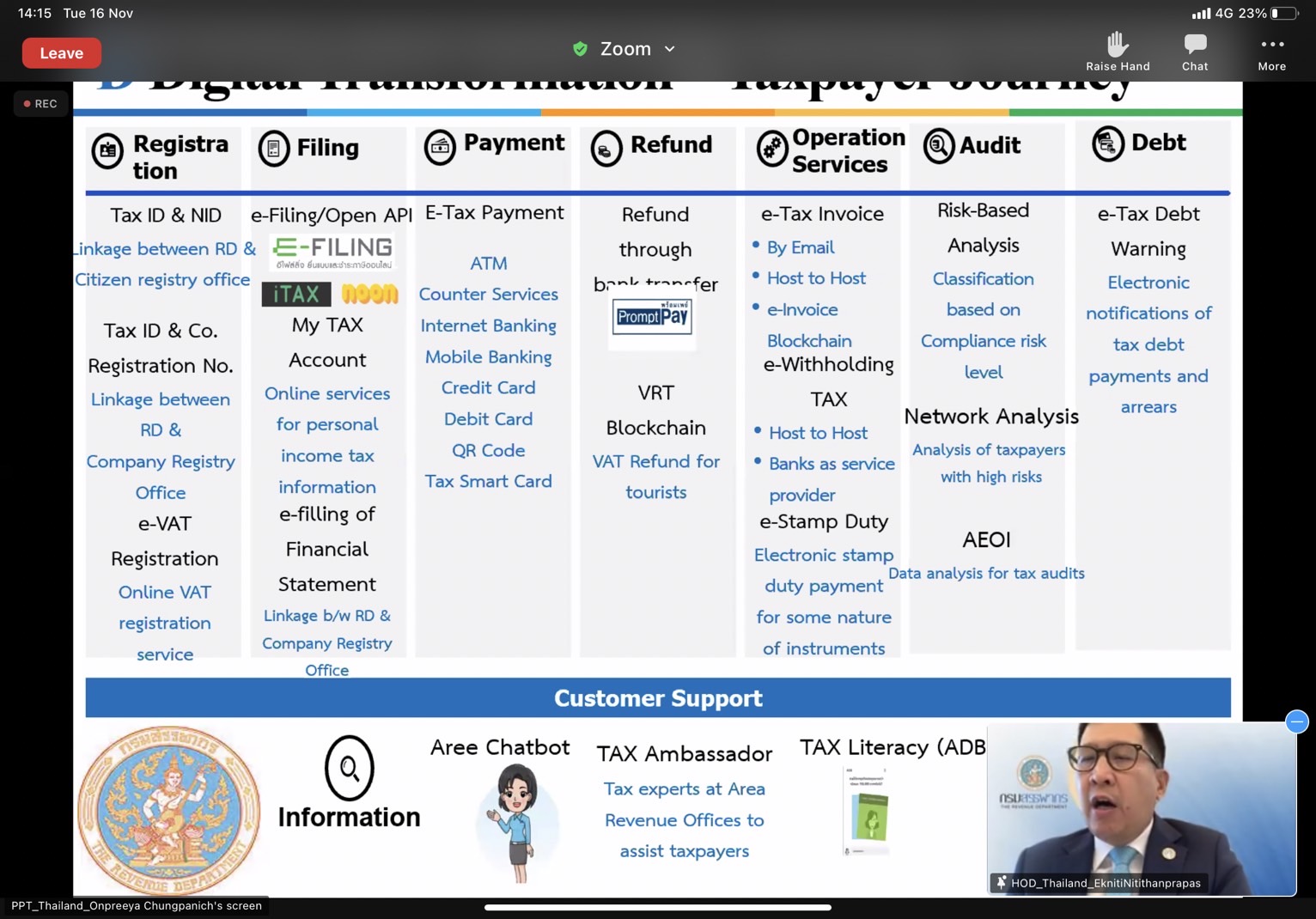 โดย ดร. เอกนิติ นิติทัณฑ์ประภาศ อธิบดีกรมสรรพากร ได้แลกเปลี่ยนประสบการณ์หัวข้อ Digitalization of Tax Administration