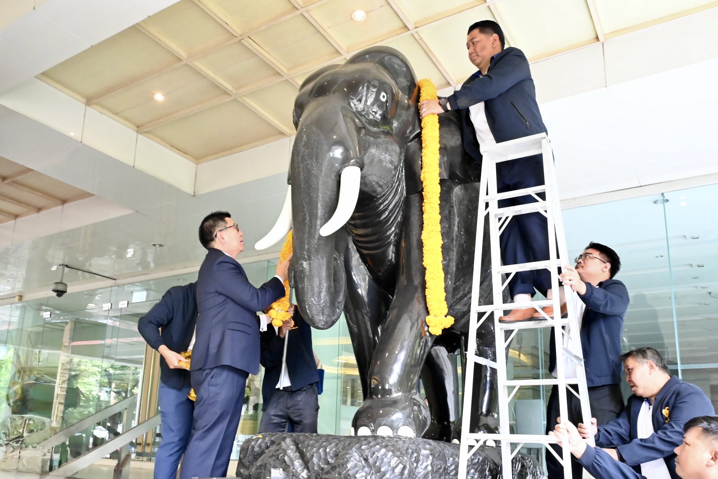 ร่วมพิธีสักการะสิ่งศักดิ์สิทธิ์ประจำกระทรวงการคลัง และร่วมแสดงความยินดีกับ