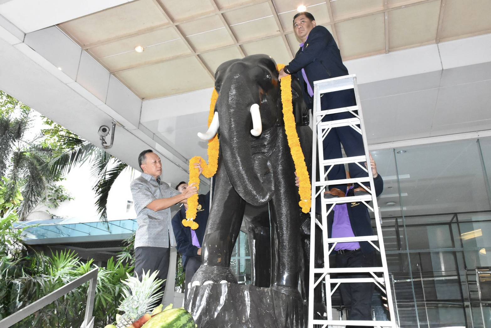ร่วมพิธีสักการะสิ่งศักดิ์สิทธิ์ประจำกระทรวงการคลัง และร่วมแสดงความยินดีกับ