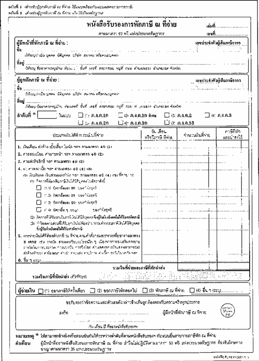 (2) ฉบับที่ 2 มีข้อความว่า "สำหรับผู้ถูกหักภาษี ณ ที่จ่าย เก็บไว้เป็นหลักฐาน"