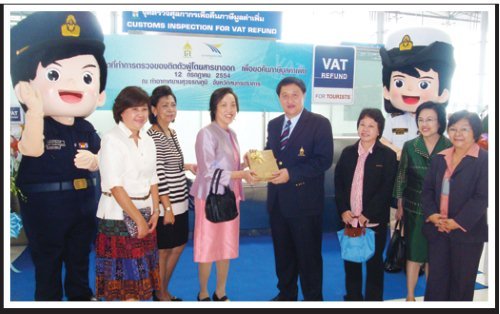 กลุ่มบริหารการคืนภาษีมูลค่าเพิ่มให้แก่นักท่องเที่ยว กรมสรรพากรร่วมแสดงความยินดี ในงานพิธีเปิดที่ทำการตรวจของติดตัวผู้โดยสารขาออกเพื่อคืนภาษีมูลค่าเพิ่มแห่งใหม่ บริเวณประตูทางเข้า 4 ชั้น 4 ท่าอากาศยานสุวรรณภูมิ จังหวัดสมุทรปราการ เมื่อวันที่ 12 กรกฎาคม 2554