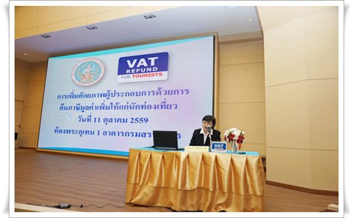 คท. ได้จัดสัมมนา เรื่อง "การเพิ่มศักยภาพผู้ประกอบการด้วยการคืนภาษีมูลค่าเพิ่มให้แก่นักท่องเที่ยว"เพื่อสร้างความเข้าใจให้ผู้ประกอบการทราบถึงสิทธิประโยชน์ที่จะได้รับและเชิญชวนให้สมัครเข้าเป็นผู้ประกอบการ VRT เมื่อวันที่ 11 ตุลาคม ๒๕๕๙ ณ ห้องพระอุเทน1 ชั้น 2 อาคารกรมสรรพากร