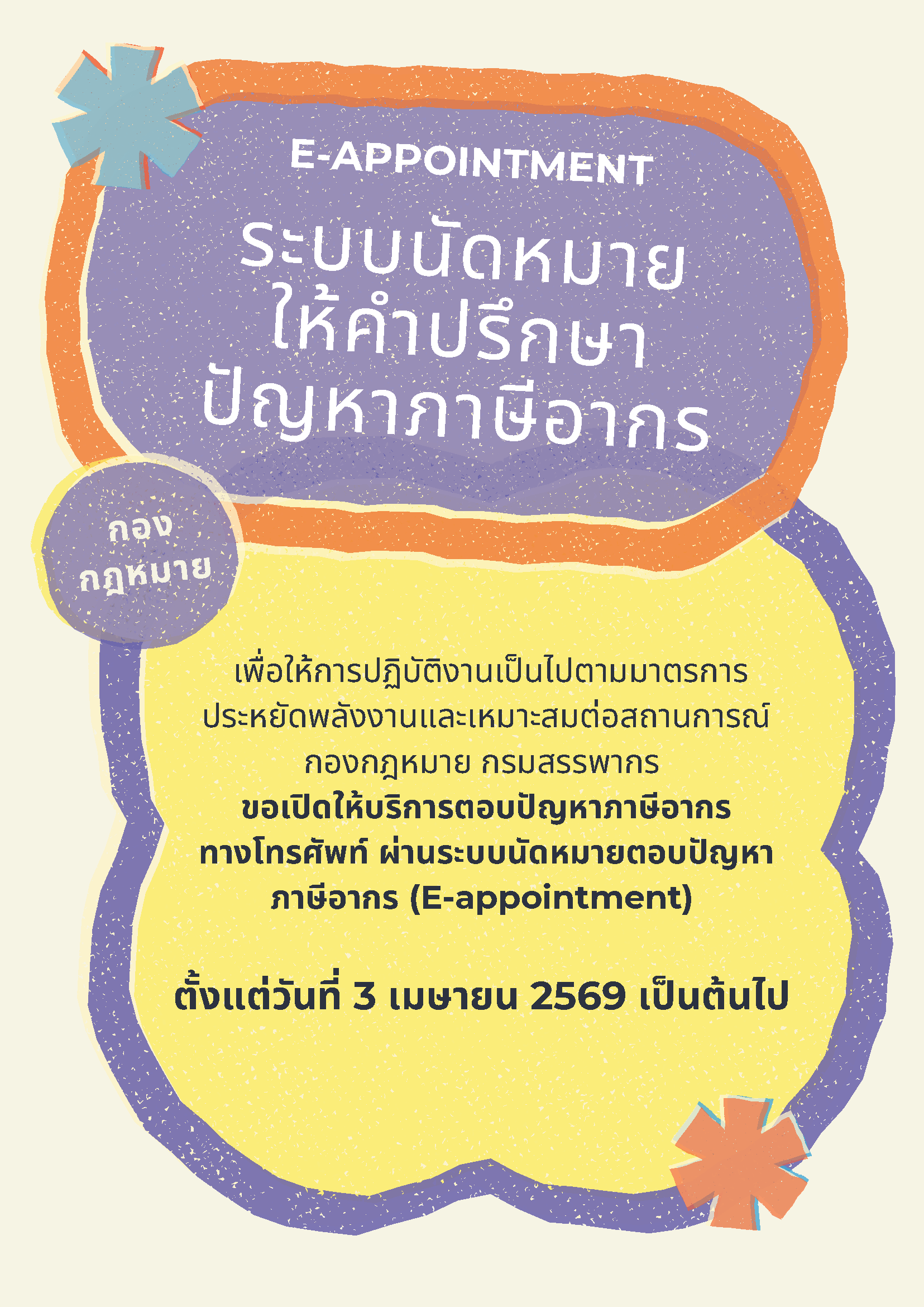 2. สามารถร่วมแสดงความเห็นต่อระบบนัดหมาย (E-Appointment) เพื่อให้คำปรึกษากฎหมายภาษีอากร