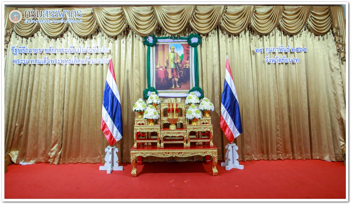 สำนักงานสรรพากรพื้นที่ชัยนาท นำโดยนางวันเพ็ญ ชุติธนธีระกุล หัวหน้าส่วนวางแผนและประเมินผล พร้อมคณะ เข้าพิธีถวายเครื่องราชสักการะ วางพานพุ่มดอกไม้สดเนื่องใน “วันที่ระลึกพระบาทสมเด็จพระพุทธเลิศหล้านภาลัย" ประจำปี 2569 ในวันที่ 24 กุมภาพันธ์ 2569 เวลา 09.00 น. ณ อาคารวิมลคุณากร ศาลากลางจังหวัดชัยนาท โดยมีนายภูมิวัชร์ อุดมทรัพย์ ผู้ว่าราชการจังหวัดชัยนาท พร้อมด้วยส่วนราชการ ร่วมพิธี ฯ