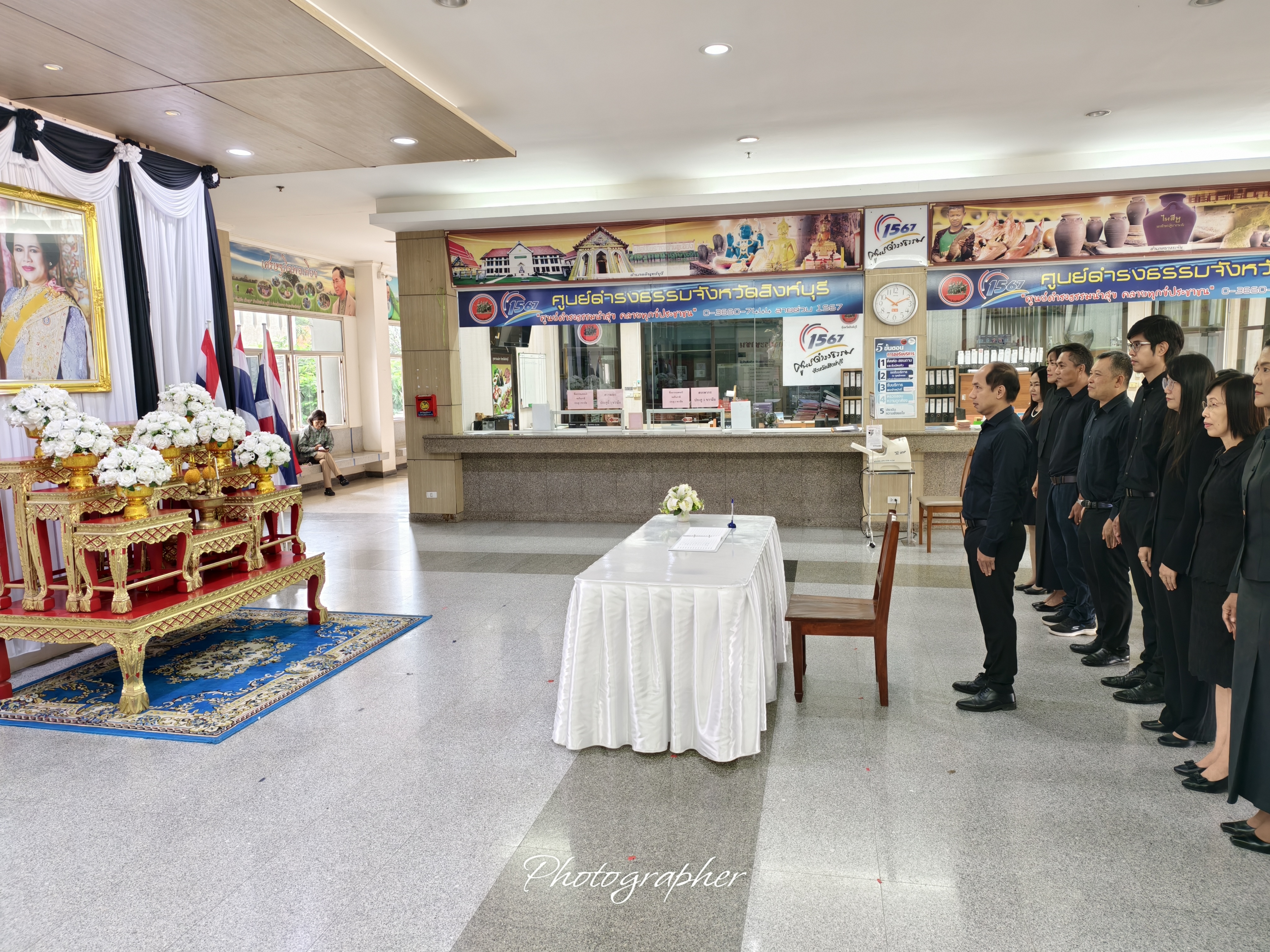 สำนักงานสรรพากรพื้นที่สิงห์บุรี ลงนามถวายความอาลัย และถวายสักการะหน้าพระฉายาลักษณ์ สมเด็จพระนางเจ้าสิริกิติ์ พระบรมราชินีนาถ พระบรมราชชนนีพันปีหลวง