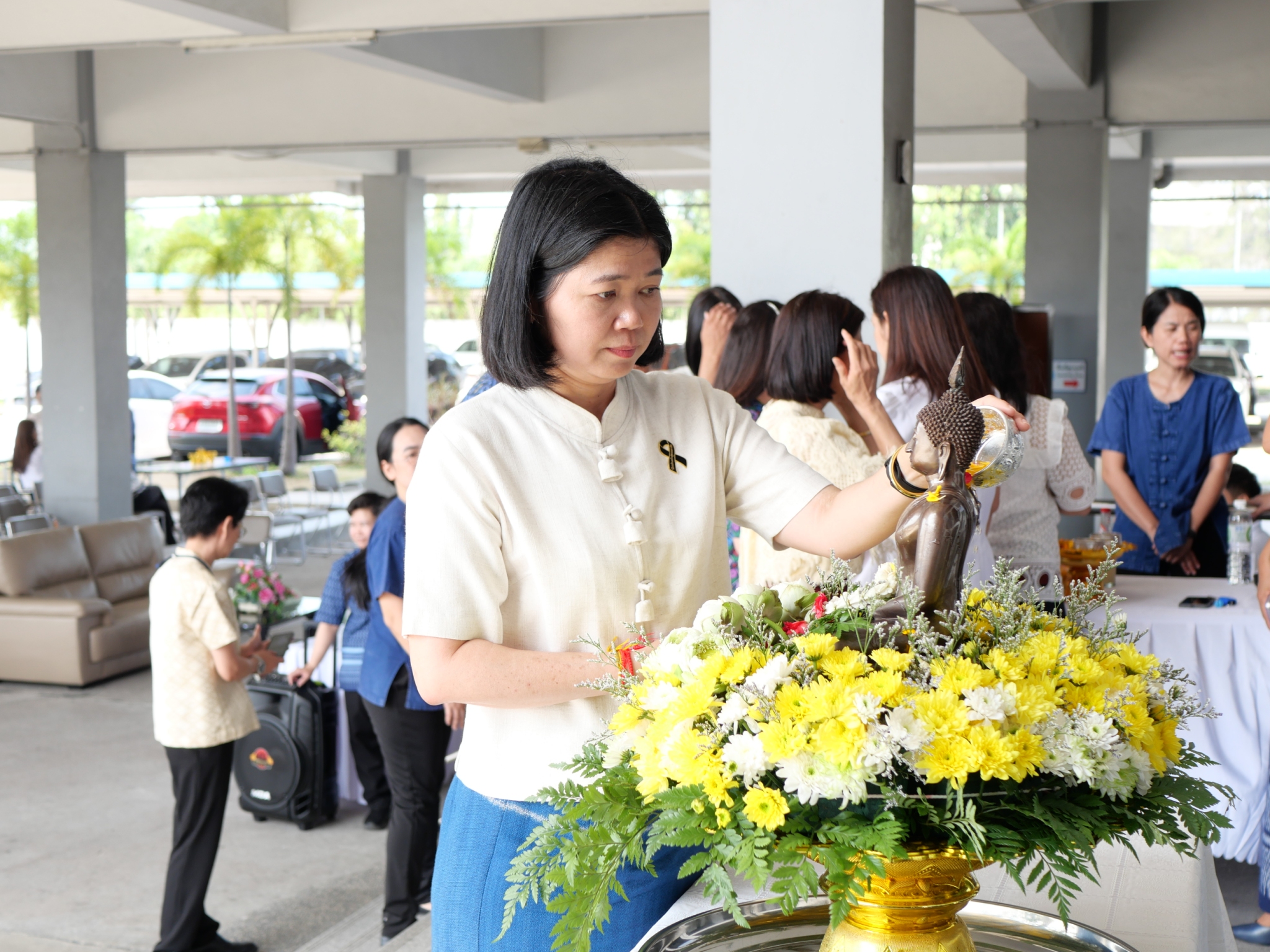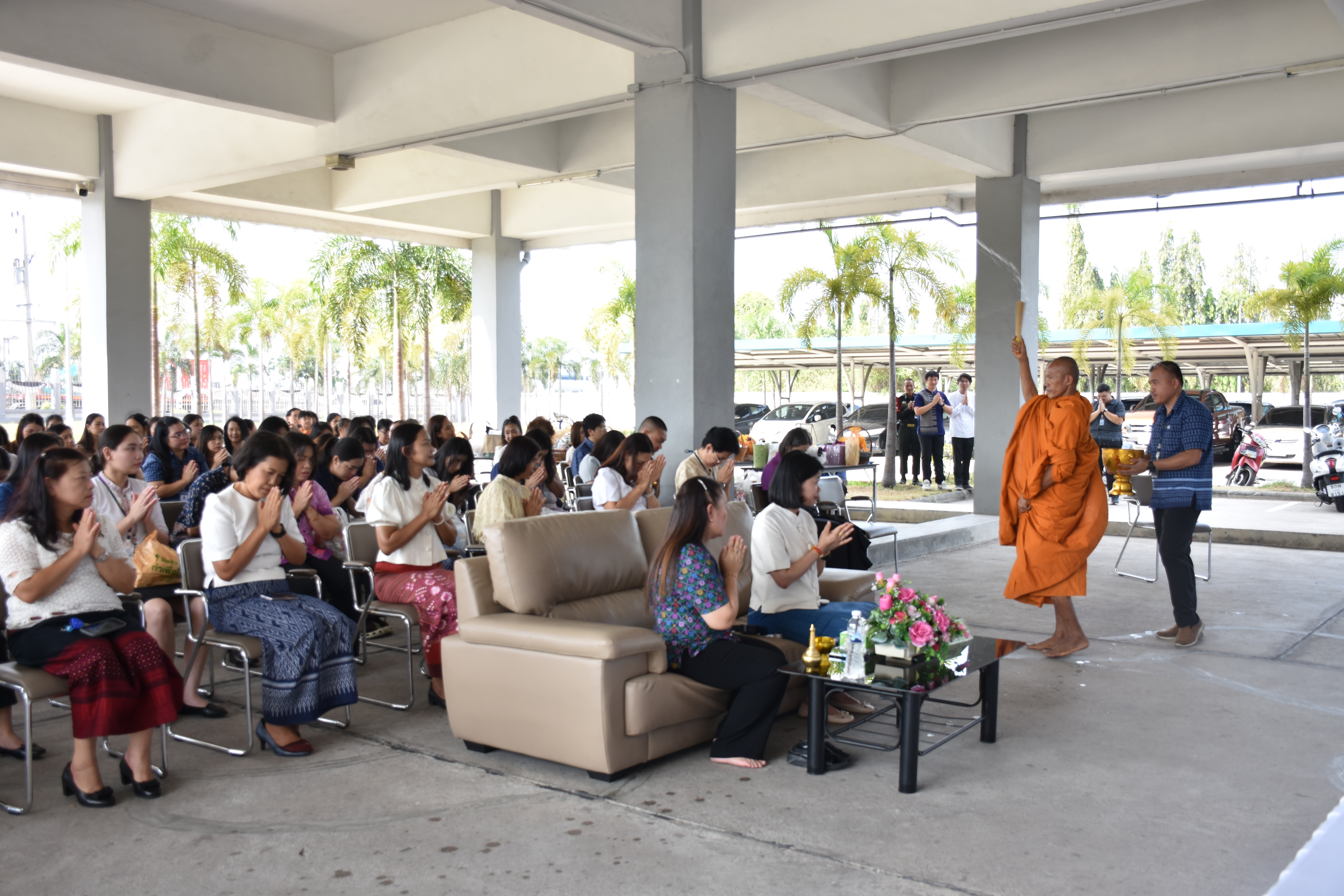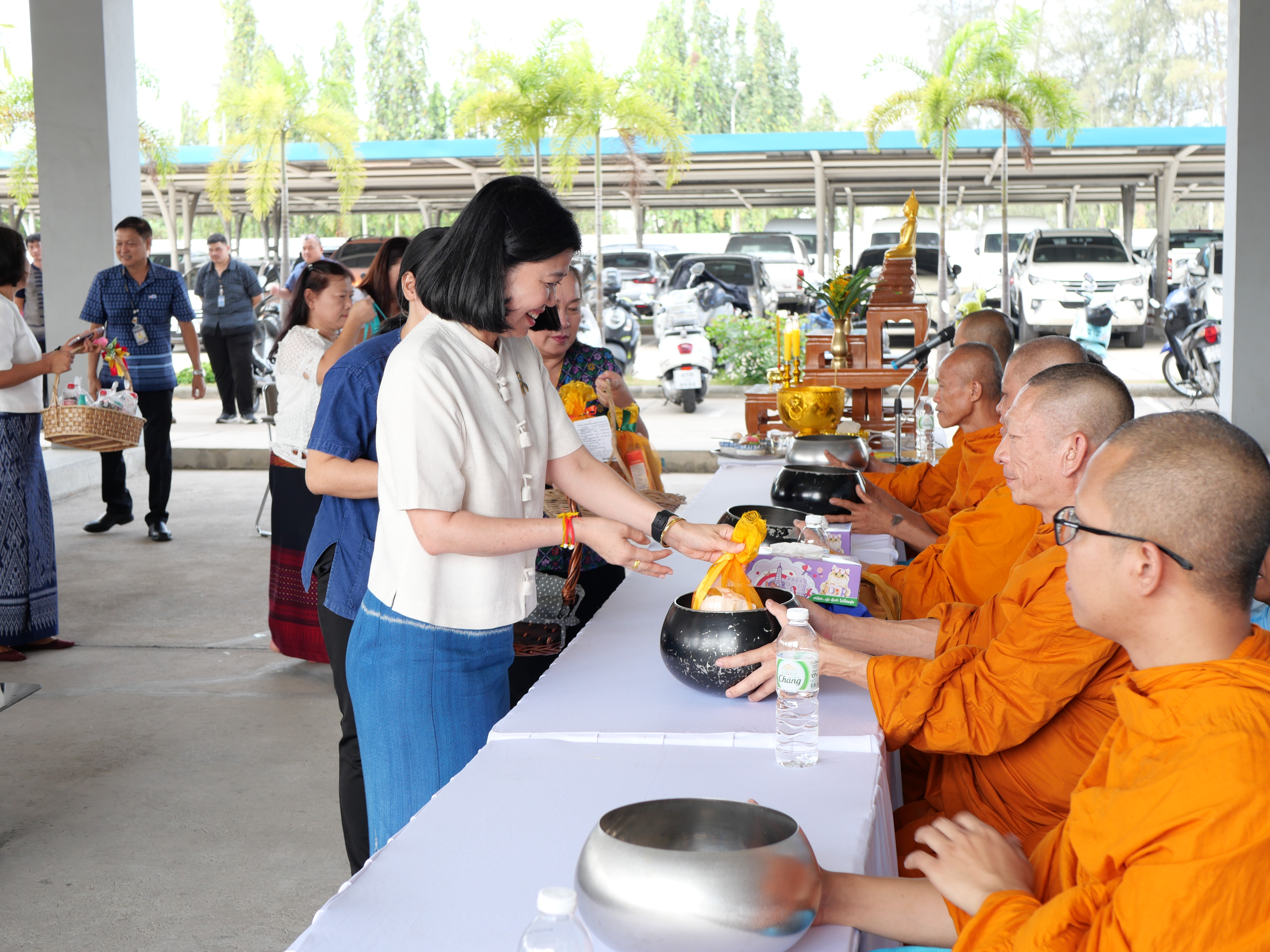 เข้าร่วมพิธีทำบุญตักบาตรข้าวสารอาหารแห้งแด่พระภิกษุสงฆ์ 5 รูป พิธีสรงน้ำพระพุทธรูป