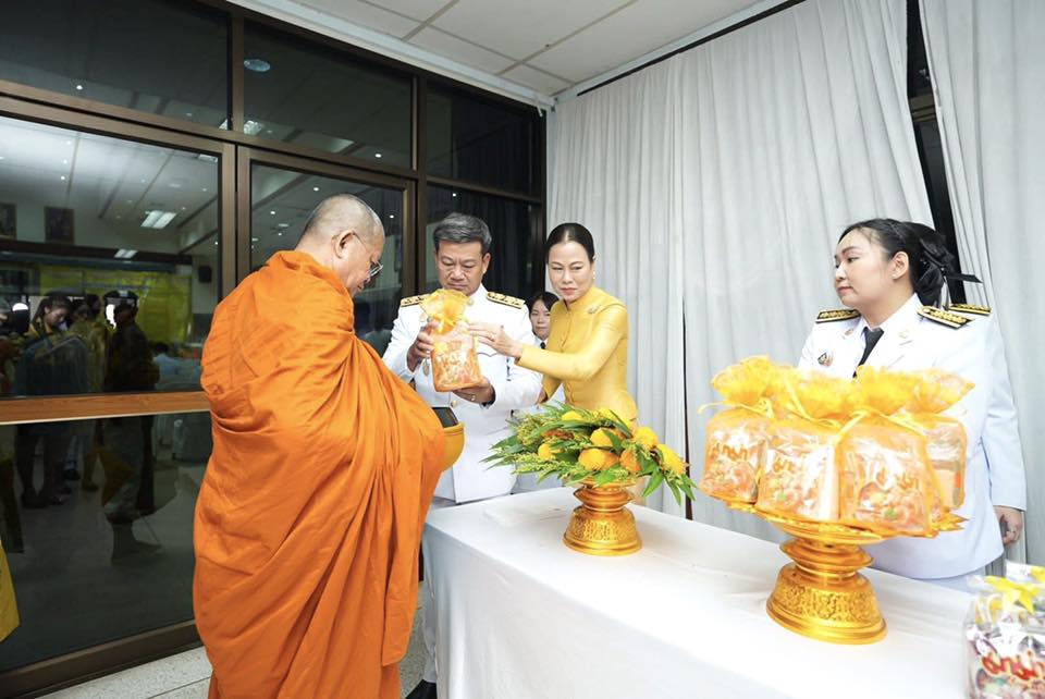 วันจันทร์ที่ 13 ตุลาคม 2568 นายวุฒิชัย บุตรใส สรรพากรพื้นที่สระแก้ว มอบหมายให้นายสัมพันธ์ ฉิมมาฉุย นิติกรชำนาญการ ข้าราชการ และลูกจ้างในสังกัด เข้าร่วมพิธีสวดพระพุทธมนต์และทำบุญตักบาตรถวายพระราชกุศลรวมทั้งพิธีวางพวงมาลาเนื่องใน “วันนวมินทรมหาราช” เพื่อร่วมแสดงความจงรักภักดี และน้อมรำลึกในพระมหากรุณาธิคุณอันหาที่สุดมิได้ของ พระบาทสมเด็จพระบรมชนกาธิเบศร มหาภูมิพลอดุลยเดชมหาราช บรมนาถบพิตร โดยมี นายปริญญา โพธิสัตย์ ผู้ว่าราชการจังหวัดสระแก้ว เป็นประธานในพิธีฯ ณ หอประชุมปางสีดา ศาลากลางจังหวัดสระแก้ว จังหวัดสระแก้ว