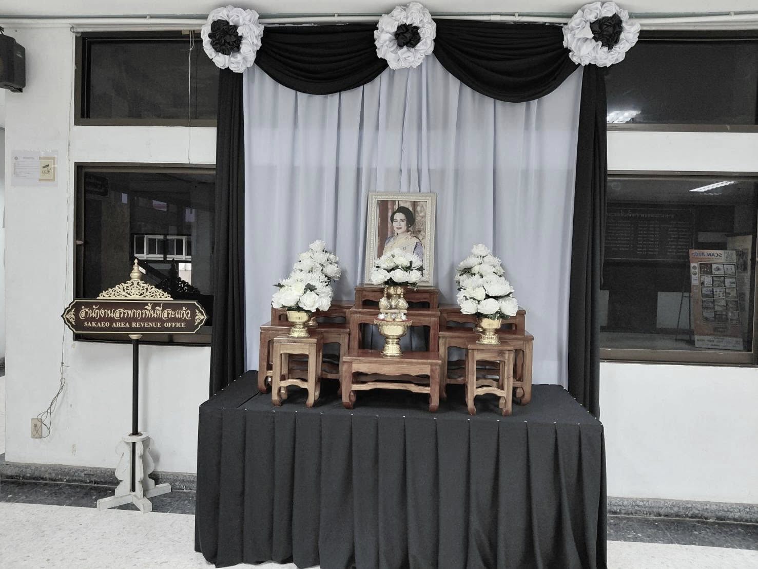 วันที่ 30 ตุลาคม 2568 เจ้าหน้าที่ในสังกัดสำนักงานสรรพากรพื้นที่สระแก้ว จัดกิจกรรมจิตอาสา ทำความดีด้วยหัวใจ เพื่อถวายเป็นพระราชกุศล และแสดงความสำนึก ในพระมหากรุณาธิคุณ สมเด็จพระนางเจ้าสิริกิติ์ พระบรมราชินีนาถ พระบรมราชชนนีพันปีหลวง โดยช่วยกันจัดทำริบบิ้นสีดำ เพื่อใช้แสดงความไว้อาลัย แจกจ่ายให้กับเจ้าหน้าที่ และประชาชนทั่วไป รวมทั้งช่วยกันจัดตกแต่งโต๊ะหมู่บูชา ณ บริเวณชั้น 1 ศาลากลางจังหวัด สำนักงานสรรพากรพื้นที่สระแก้ว
