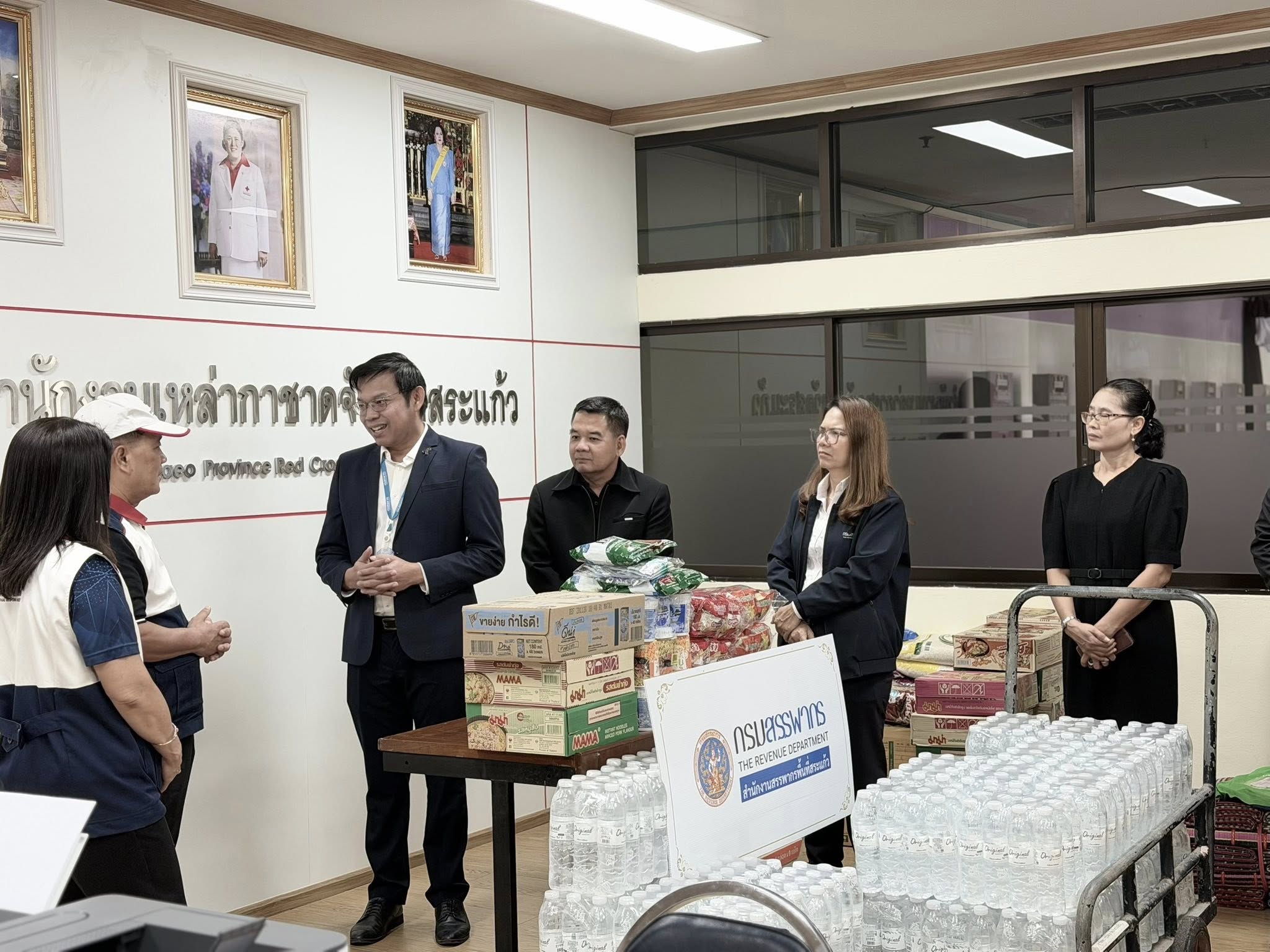 วันศุกร์ที่ 19 ธันวาคม 2568 นายวุฒิชัย บุตรใส สรรพากรพื้นที่สระแก้ว พร้อมด้วยคณะผู้บริหาร ในสังกัดสำนักงานสรรพากรพื้นที่สระแก้ว มอบสิ่งของอุปโภค บริโภค และของใช้จำเป็น เพื่อนำไปช่วยเหลือผู้ที่ได้รับผลกระทบจากสถานการณ์ความไม่สงบชายแดนไทย-กัมพูชา ให้กับศูนย์พักพิงชั่วคราวในพื้นที่จังหวัดสระแก้ว จำนวน 18 ศูนย์ ณ สำนักงานเหล่ากาชาดจังหวัดสระแก้ว ชั้น 2 ศาลากลางจังหวัดสระแก้ว
