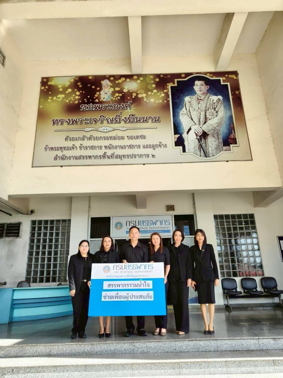 สรรพากรพื้นที่สมุทรปราการ 2 พร้อมข้าราชการและลูกจ้างในสังกัด ได้ร่วมกันบริจาคเงินเพื่อช่วยเหลือผู้ประสบอุทกภัยในจังหวัดภาคใต้ ตามโครงการสรรพากรรวมน้ำใจช่วยเพื่อนผู้ประสบภัย