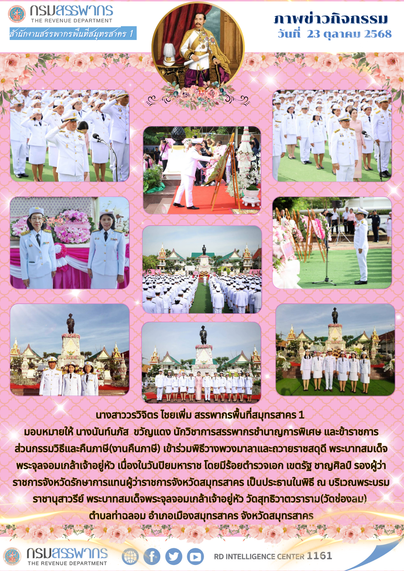 ภาพกิจกรรม สท.สมุทสาคร 1 เข้าร่วมพิธีวางพวงมาลาและถวายราชสดุดี พระบาทสมเด็จพระจุลจอมเกล้าเจ้าอยู่หัว