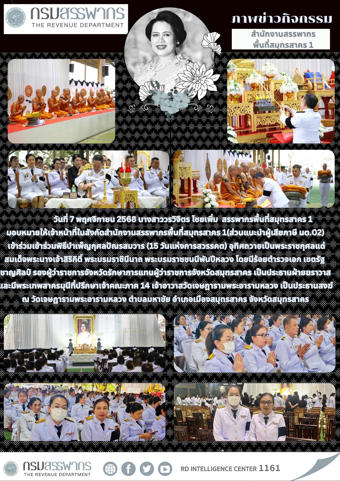 ภาพกิจกรรม สท.สมุทรสาคร 1 เข้าร่วมพิธีบำเพ็ญกิศลปัณรสมวาร อุทิศถวายเป็นพระราชกุศลแต่สมเด็จพระนางเจ้าสิริกิติ์ พระบรมราชินีนาถฯ
